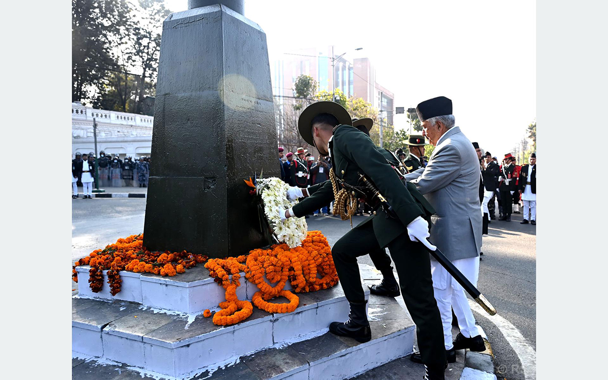 राष्ट्रपतिद्वारा राष्ट्र निर्माताको सालिकमा पुष्पहार अर्पण