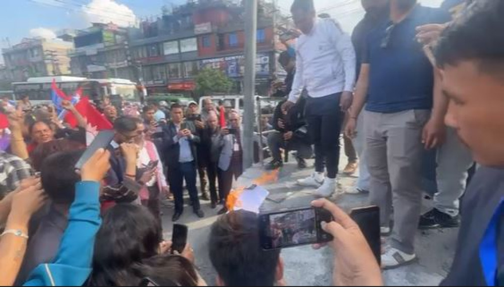 पोखरामा एमालेको प्रदर्शन : आयोगको प्रतिवेदन जलाइयो, सरकारविरुद्ध नाराबाजी