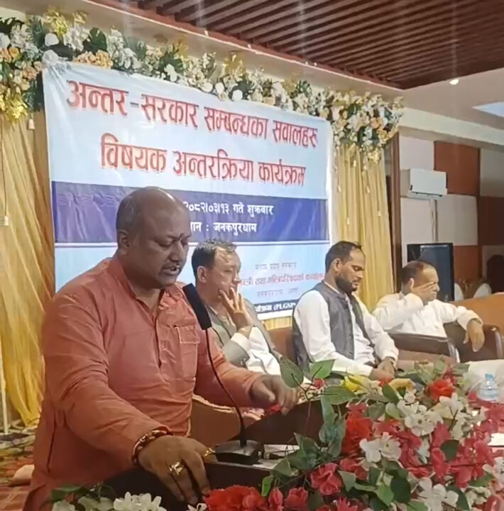 मुख्यमन्त्री तथा मन्त्रिपरिषद् कार्यालयले आज जनकपुरधाममा आयोजना गरेको ‘अन्तर–सरकार सम्बन्धका सवालहरू’ विषयक अन्तरक्रिया कार्यक्रममा उहाँले तीनै तहका सरकारबीच प्रभावकारी समन्वय नहुँदा कार्यसम्पादनमा अन्योलको अवस्था रहेको बताउनुभयो ।