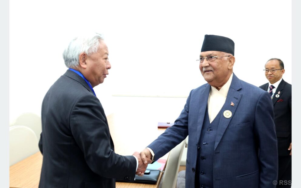 तुर्कमेनिस्तान, २२ साउन : प्रधानमन्त्री केपी शर्मा ओलीसँग एसियन पूर्वाधार लगानी बैकका अध्यक्ष जिन लिम्बुननले आज शिष्टाचार भेट गर्नुभएको छ ।