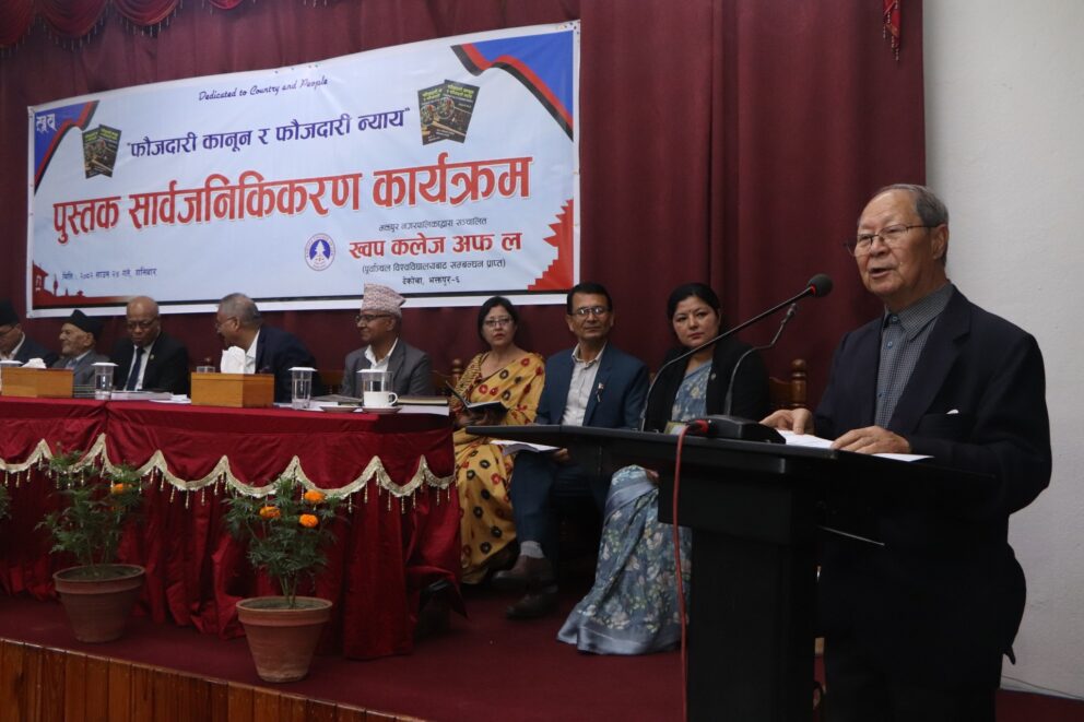 भक्तपुर, २५ साउनः प्रा डा रञ्जितभक्त प्रधानाङ्ग र सोमकान्ता भण्डारीद्वारा संयुक्त रूपमा लिखित ‘फौजदारी कानुन र फौजदारी न्याय’ पुस्तक विमोचन गरिएको छ । नेपाल मजदुर किसान पार्टीका अध्यक्ष नारायणमान बिजुक्छेँ र वरिष्ठ अधिवक्ता कृष्णप्रसाद भण्डारीले संयुक्त रूपमा उक्त पुस्तक विमोचन गर्नुभएको हो ।