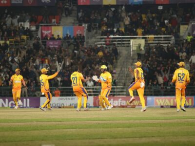 त्यसैगरी दीपेन्द्रसिंह ऐरीले २८ बलमा २७ रन बनाउदाँ लोकेश बमले १६ बलमा २४ रन जोडे । भीम सार्कीले १७ तथा आरिफ शेख र रुपेश सिंहले समान १२/१२ रन बनाए ।