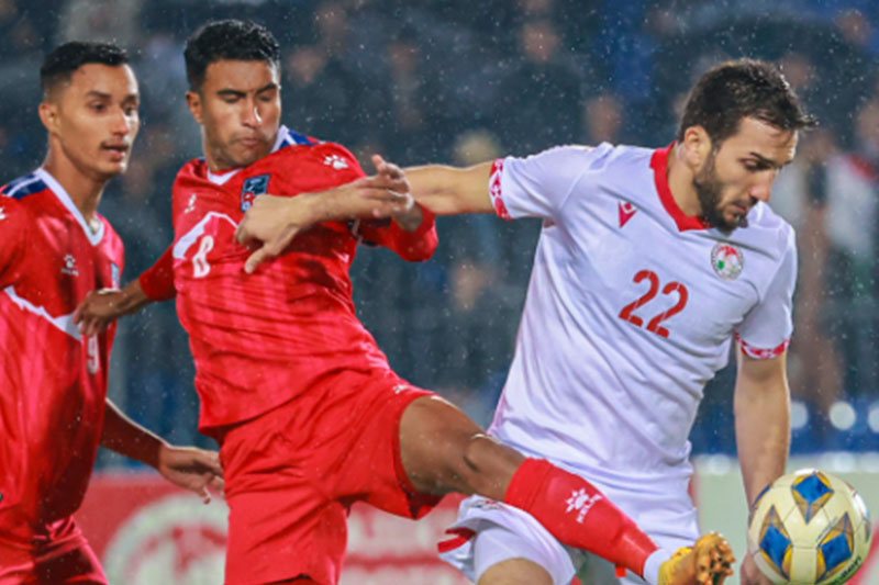 ताजकिस्तानको दुसान्बेस्थित पामिर रङ्गशालामा गए राति भएको समूह ‘के’ को पहिलो खेलमा ताजकिस्तानसँग नेपाल ४–० गोलले पराजित भएको हो ।