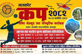 खुला वडास्तरीय पुरुष भलिबल, खुला पालिकास्तरीय महिला भलिबल, भेट्रान्स कप र माध्यमिक विद्यालयस्तरीय पुरुष भलिबल प्रतियोगिता आयोजना गर्न लागिएको गलकोट नगर भलिबल सङ्घका अध्यक्ष एवं कार्यक्रम संयोजक होमबहादुर थापाले जानकारी दिनुभयो ।