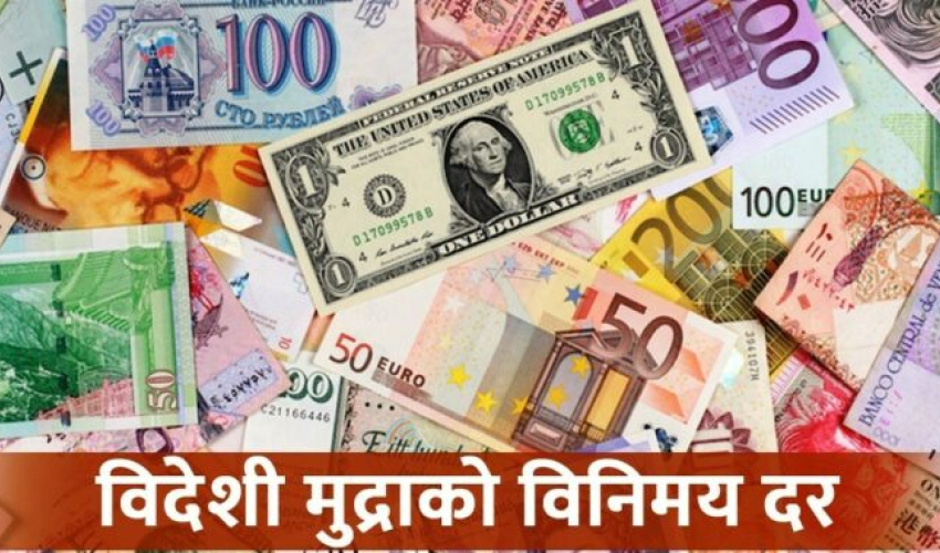 काठमाडौँ, १६ मङ्सिरः नेपाल राष्ट्र बैंकले आजका लागि विदेशी मुद्राको विनिमयदर निर्धारण गरेको छ । राष्ट्र बैंकका अनुसार अमेरिकी डलर, युरोलगायतका विदेशी मुद्राको मूल्य आज भने वृद्धि भएको छ । निर्धारित विनिमयदरअनुसार अमेरिकी डलर एकको खरिददर १४२ रुपैयाँ ९८ पैसा र बिक्रीदर १४३ रुपैयाँ ५८ पैसा निर्धारण गरिएको छ ।