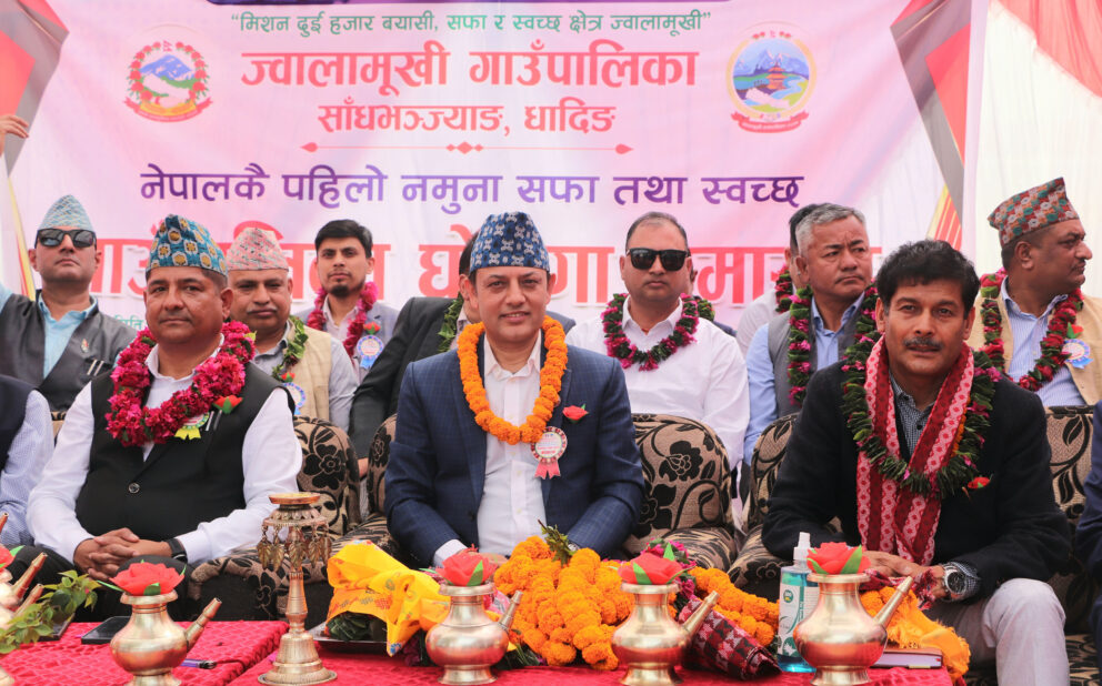 आज ज्वालामुखी गाउँपालिका-४ ढोलामा विशेष कार्यक्रमसहित प्रतिनिधिसभाका सभामुख डोलप्रसाद अर्यालले ज्वालामुखी मुलुकको पहिलो सफा तथा स्वच्छ गाउँपालिका बनेको घोषणा गर्नुभयो । सरसफाइ र स्वच्छतासम्बन्धी समुदायको सोचमा सकारात्मक परिवर्तन ल्याई सफा तथा स्वच्छ गाउँ अभियानलाई पूर्ण सार्थकता दिन सफल भएकामा प्रशंसा गर्नुभयो ।