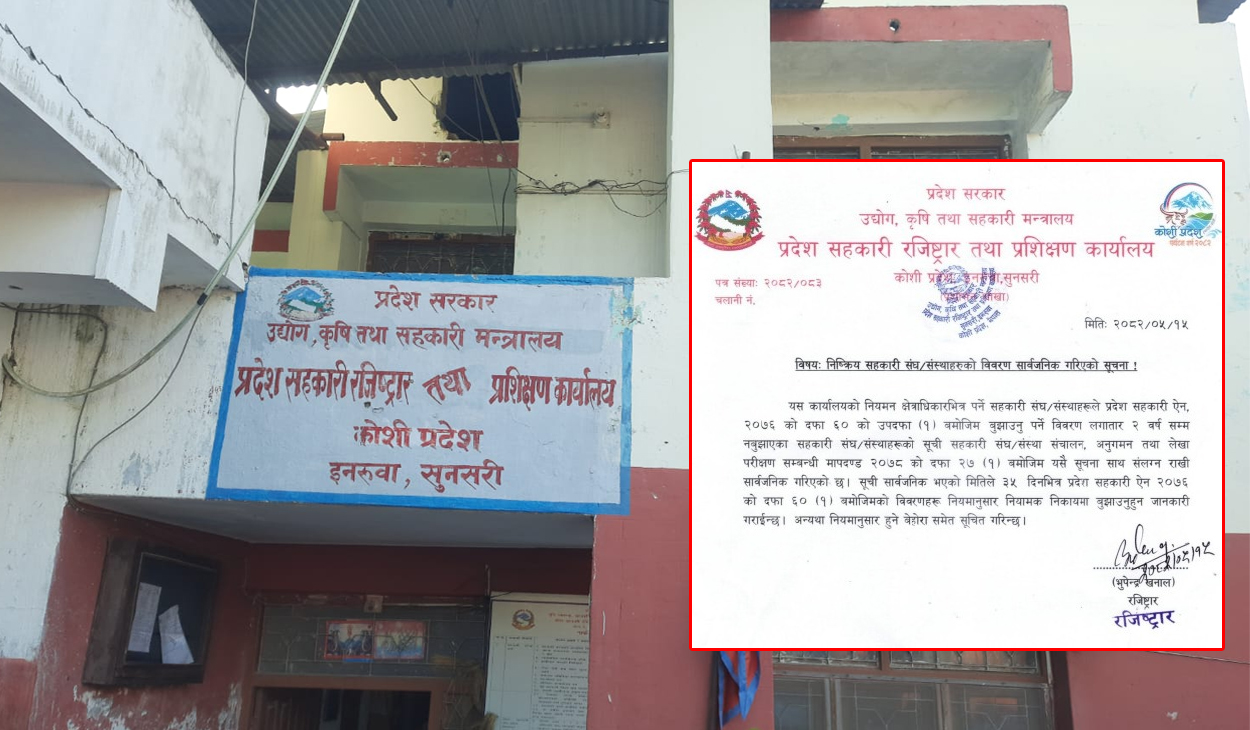 कोशी प्रदेशमा ४८७ सहकारी निष्क्रिय सूचीमा