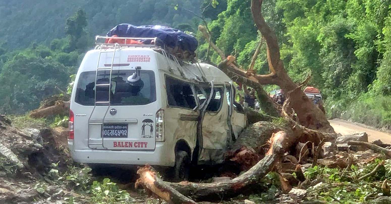 गुडिरहेको माइक्रो बसमाथि रुख ढल्दा नौ यात्रु घाइते