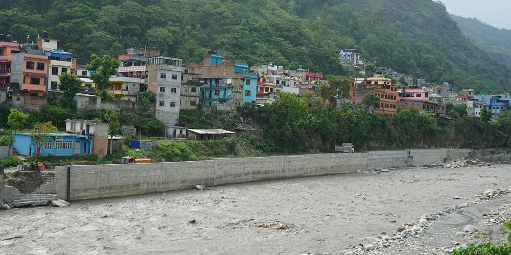 बाढी नियन्त्रण गर्न पक्की पर्खाल निर्माण