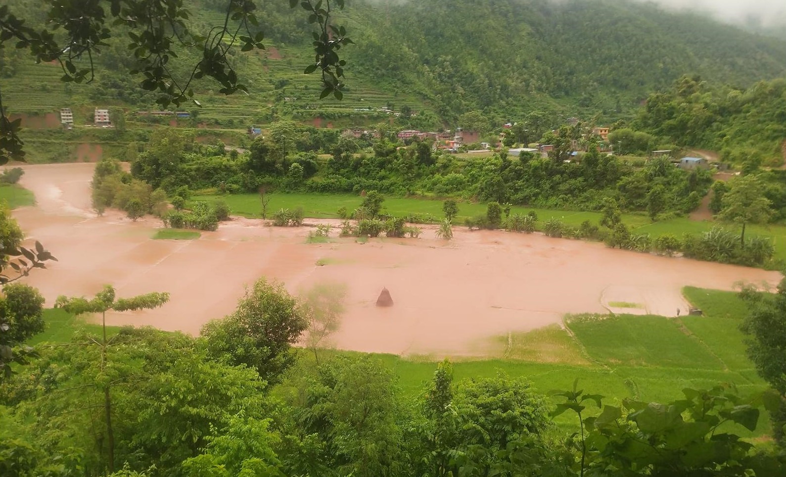 नुवाकोटमा बाढीले सयौँ रोपनी धानखेत बगरमा परिणत