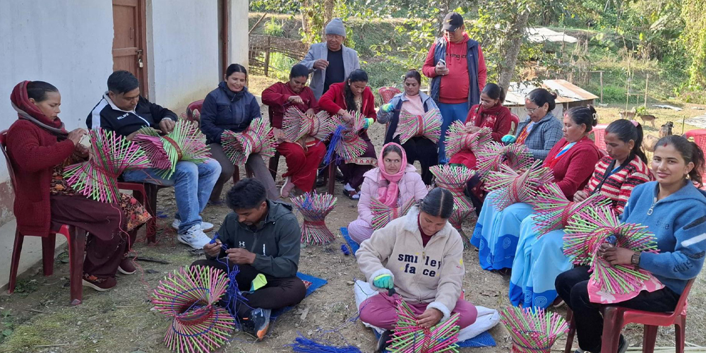 आफ्नै ठाउँमा व्यावसायिक बन्न मुढा बनाउने सीप सिक्दै दिक्तेलका महिला