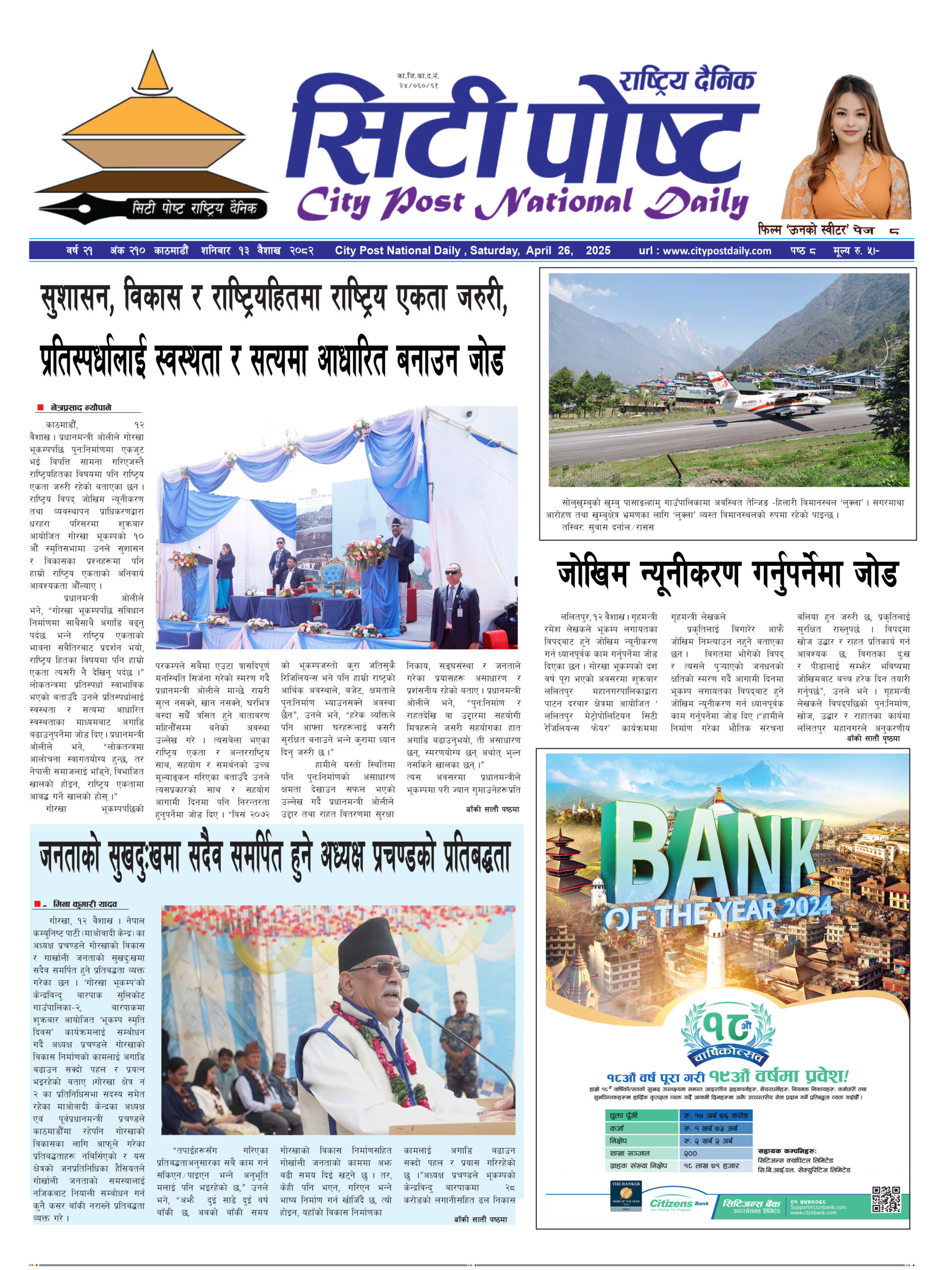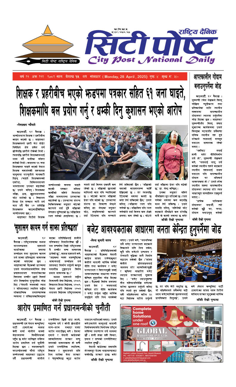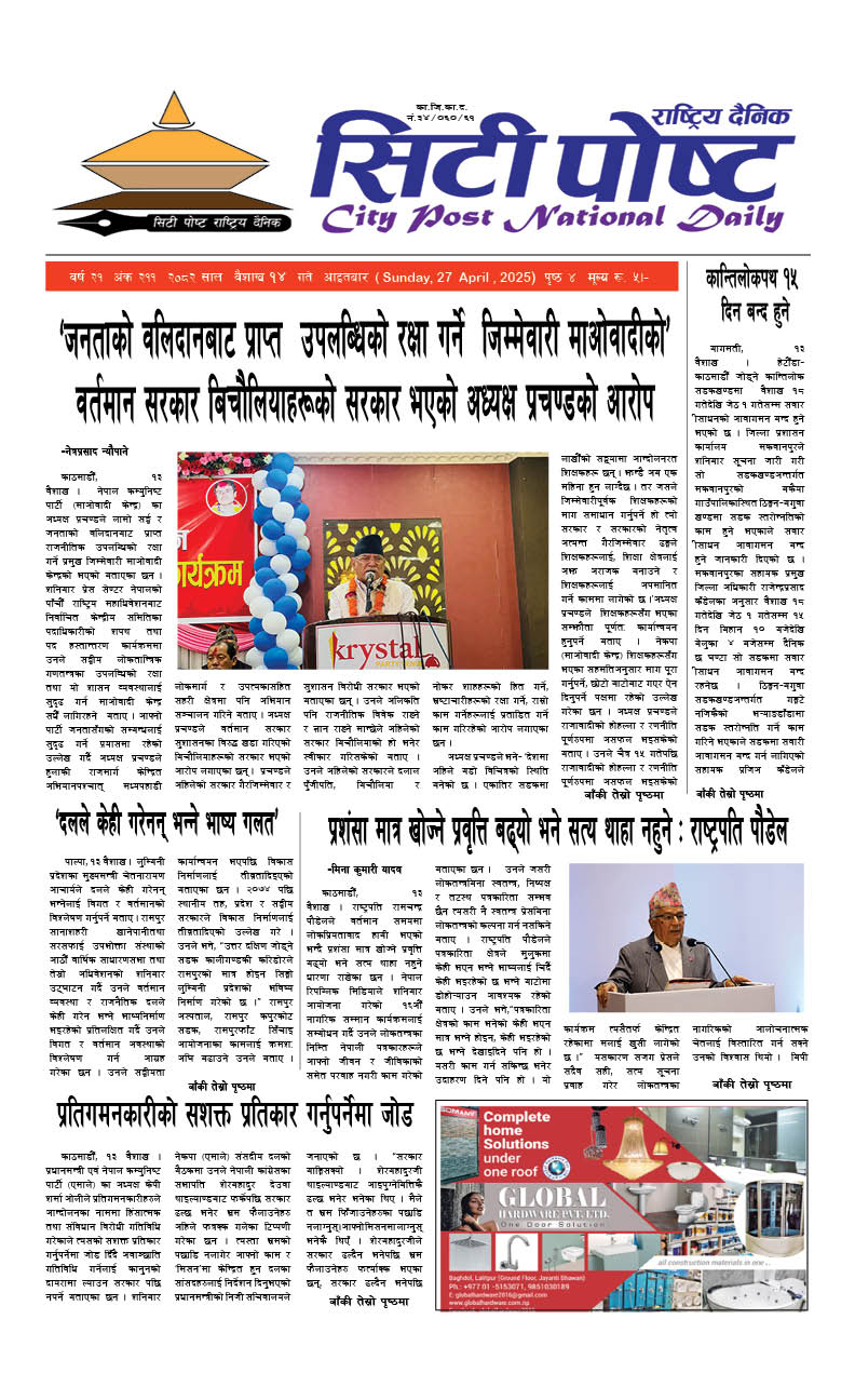 सिटीपोष्ट राष्ट्रिय दैनिक २०८२ वैशाख १९