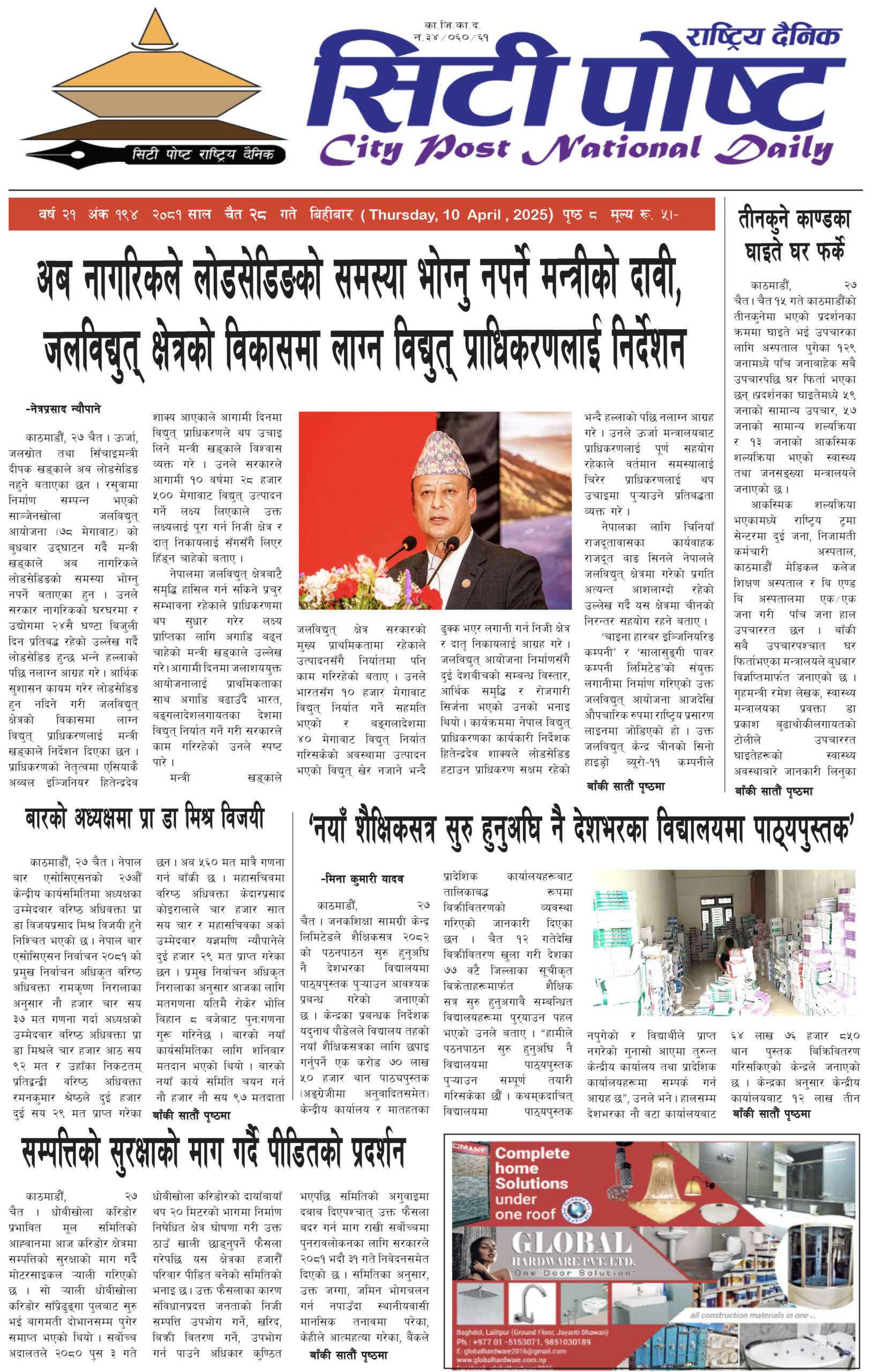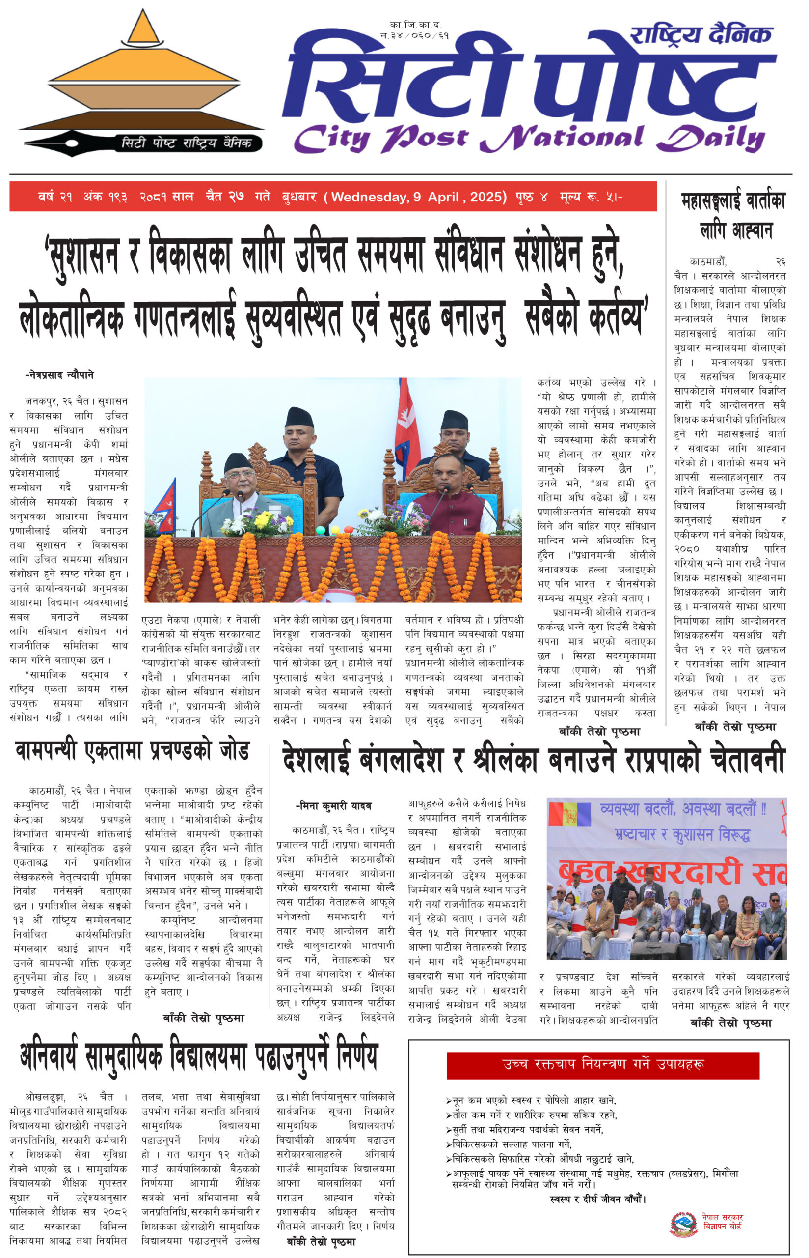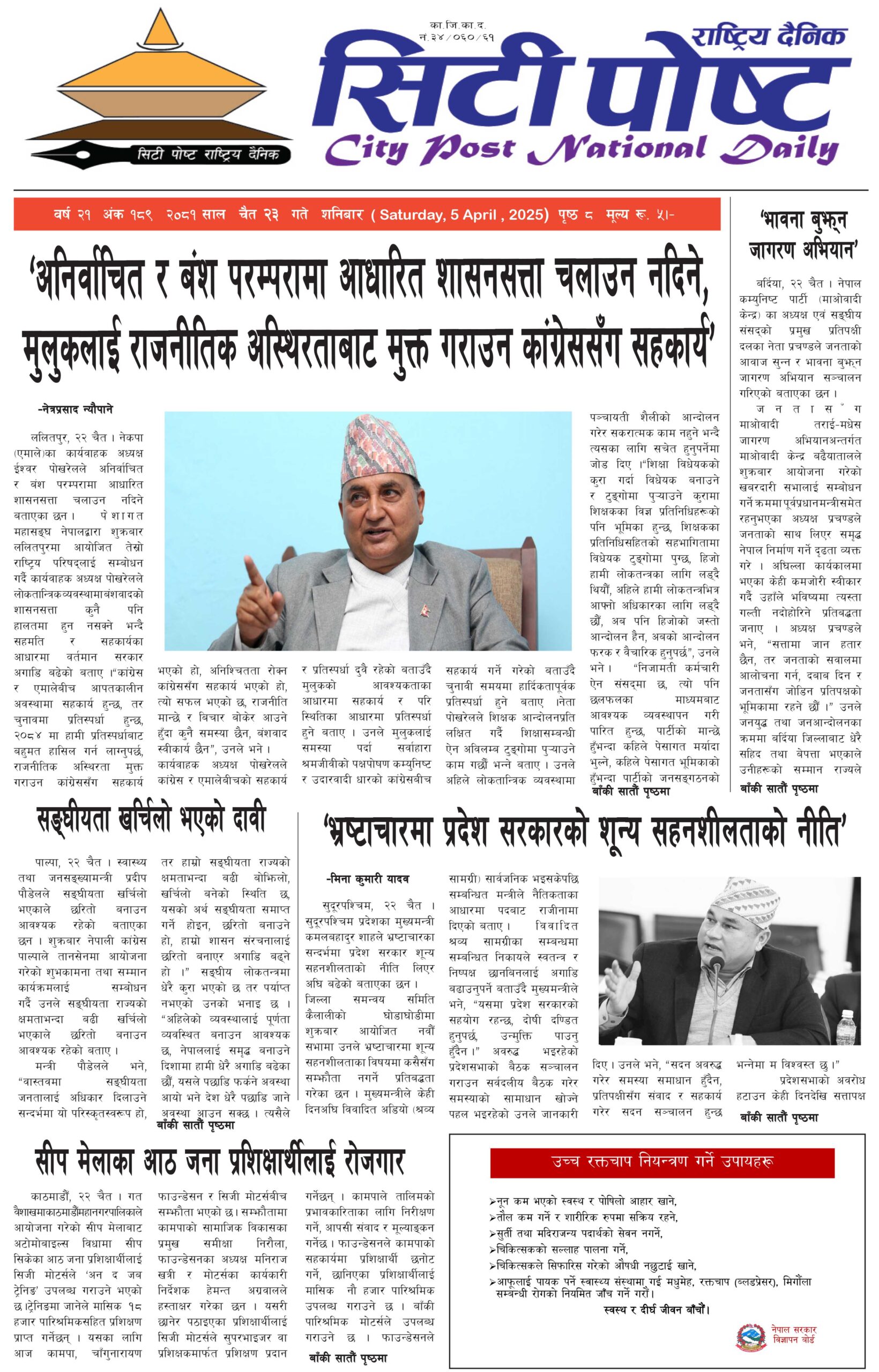 सिटीपोष्ट राष्ट्रिय दैनिक २०८१ चैत २१