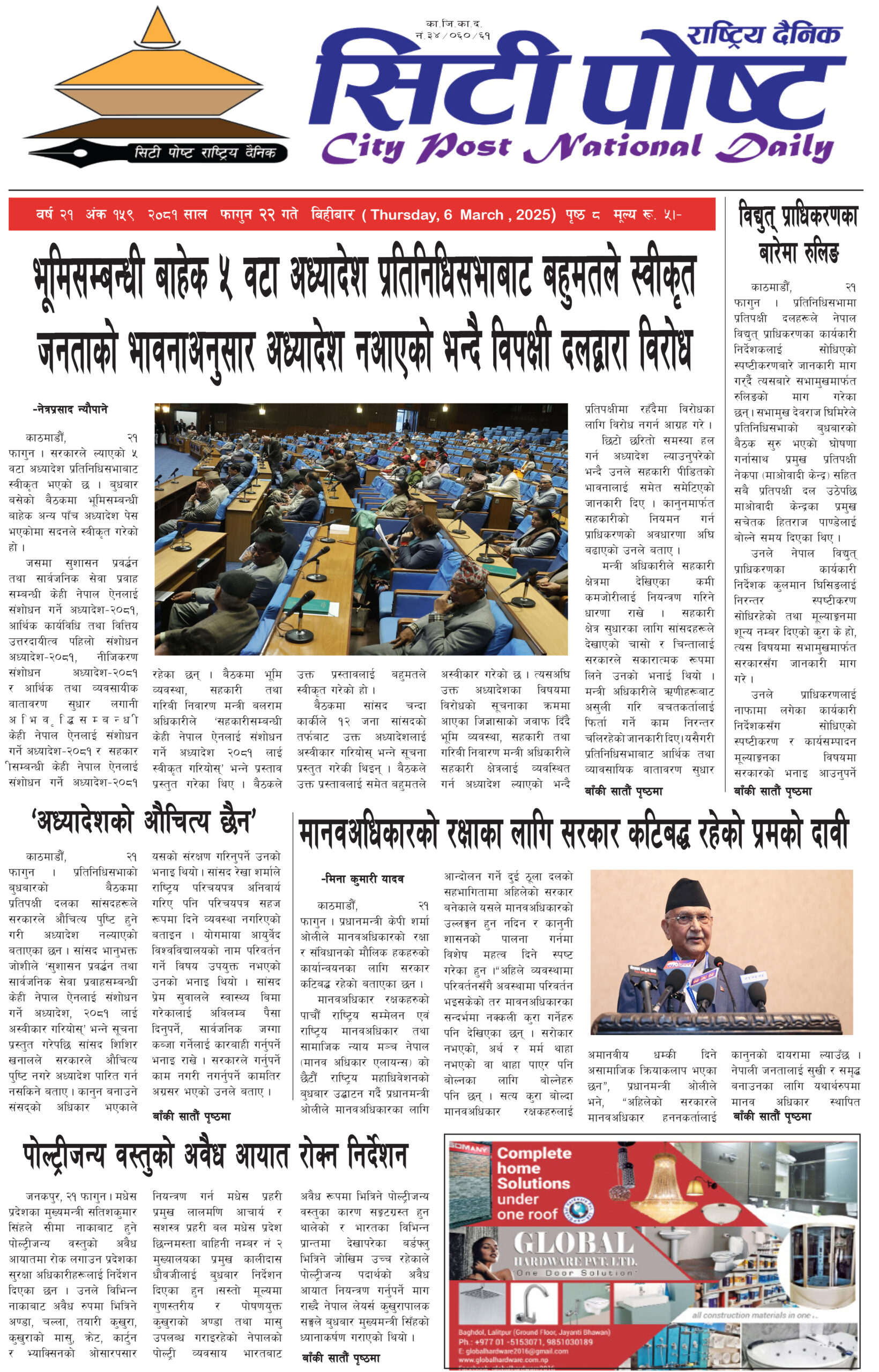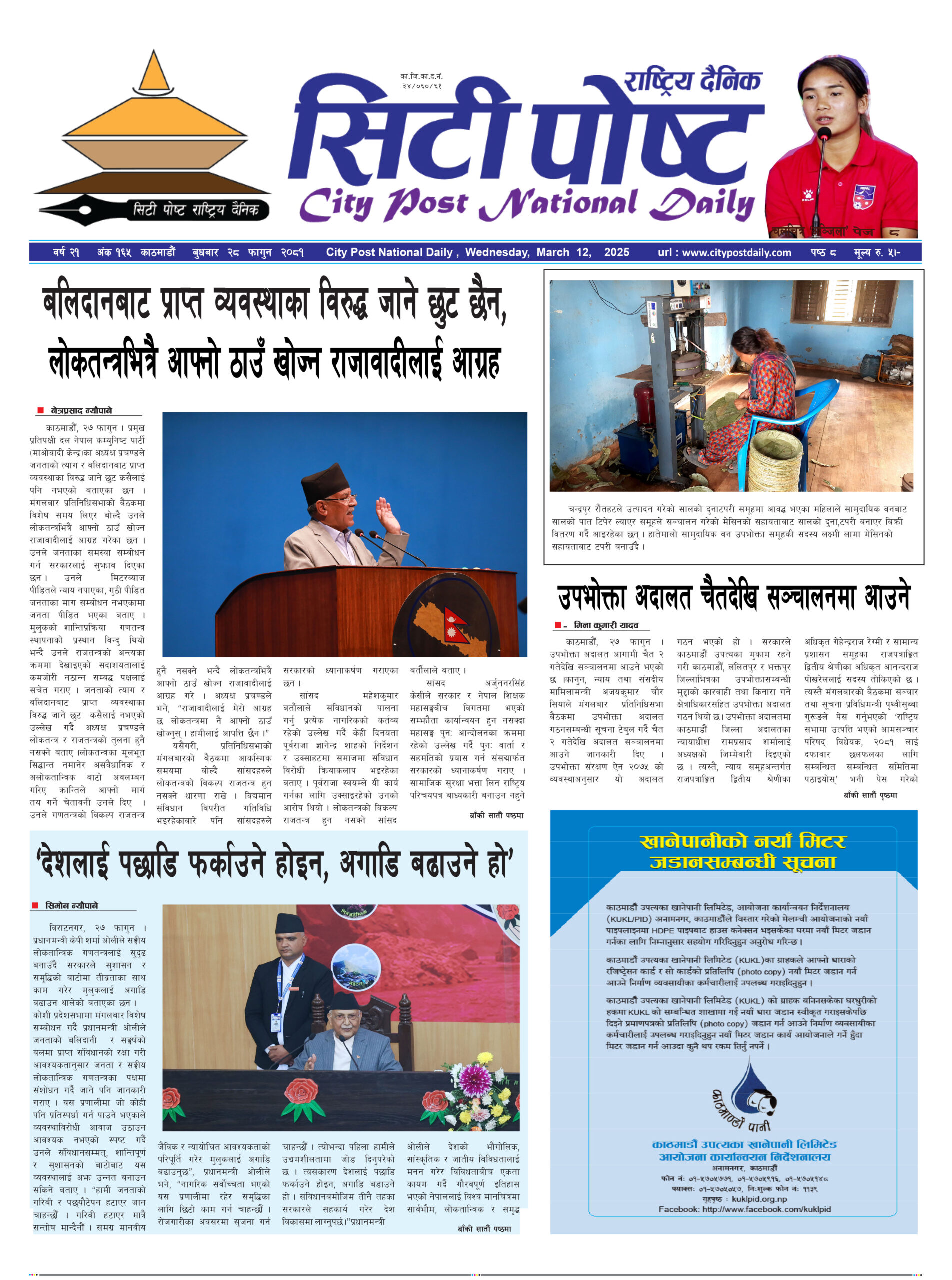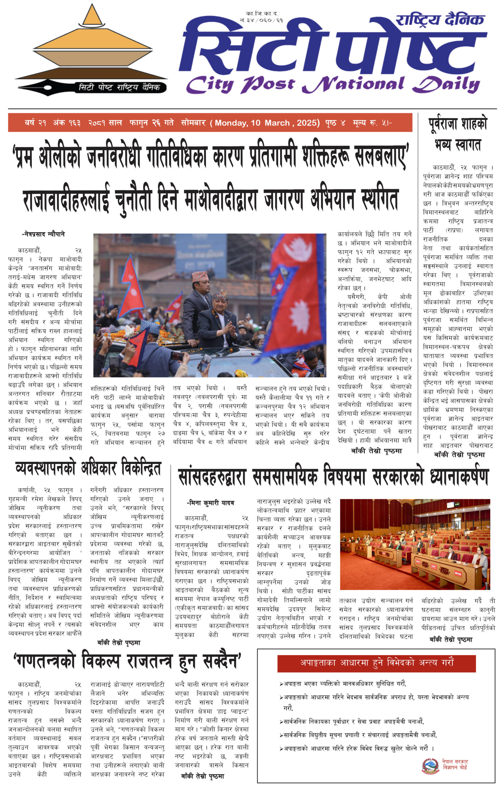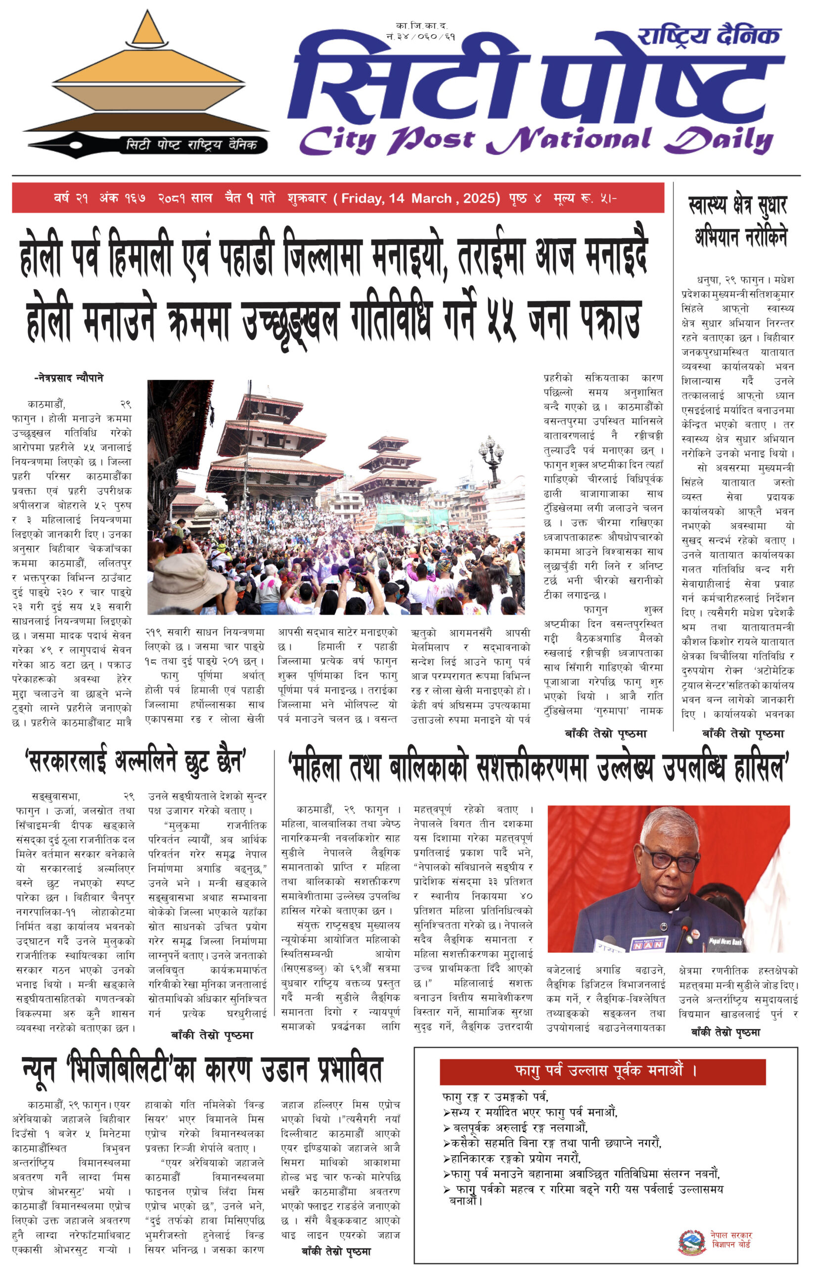 सिटीपोष्ट राष्ट्रिय दैनिक २०८१ फागुन २५