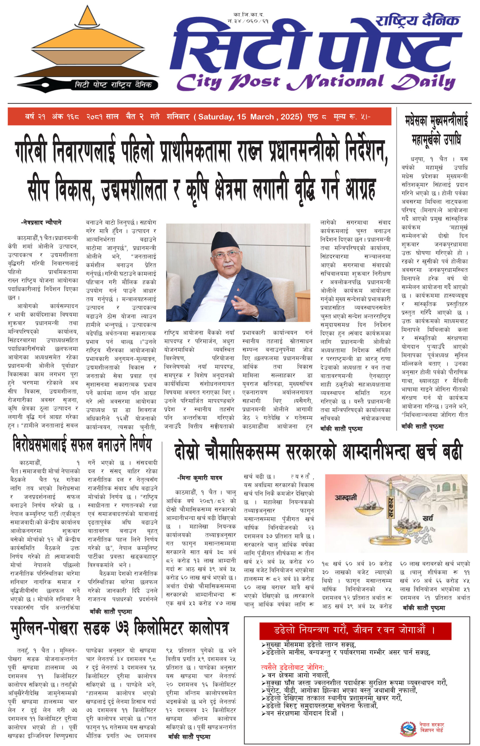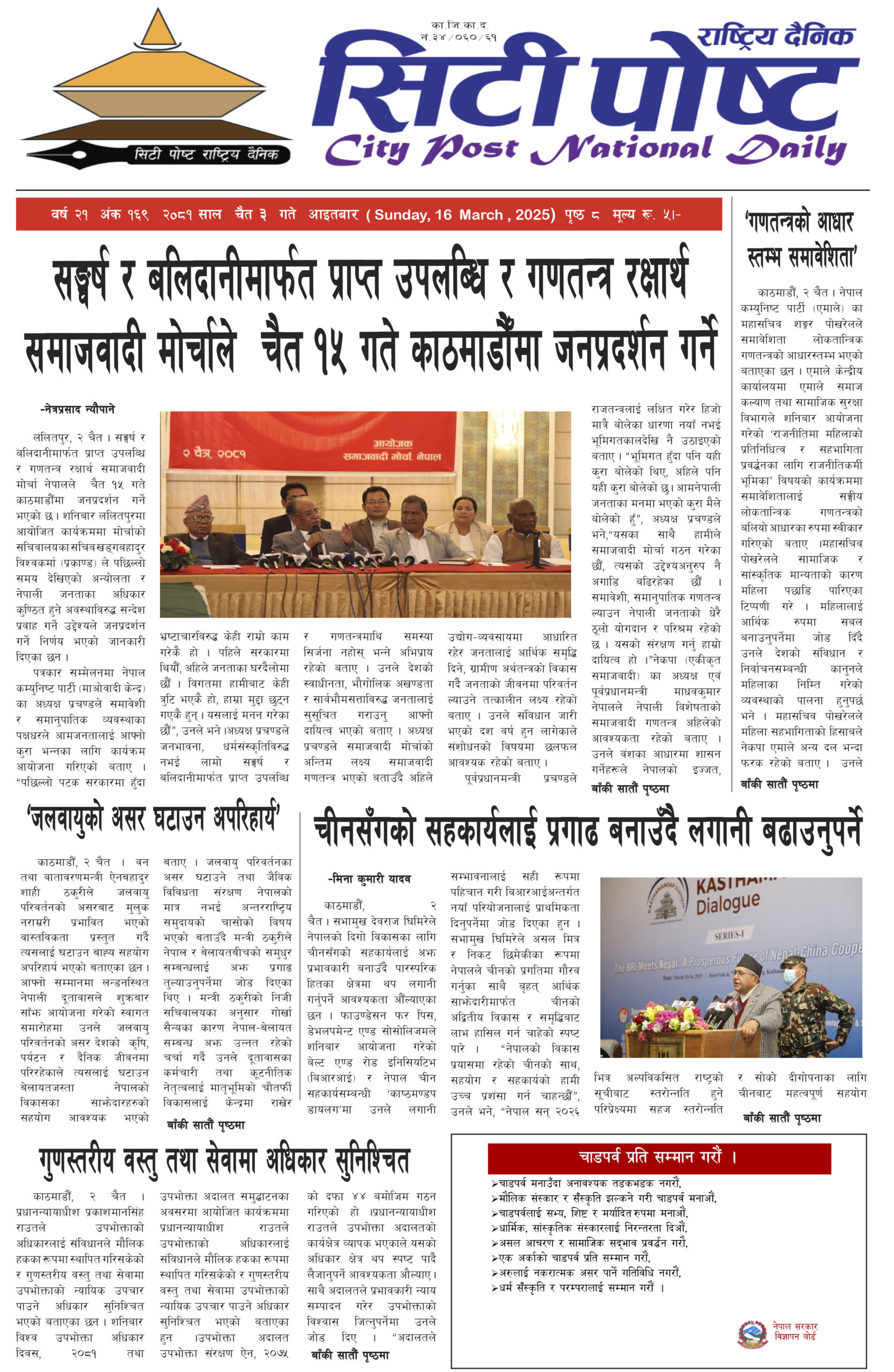 सिटीपोष्ट राष्ट्रिय दैनिक २०८१ चैत ३