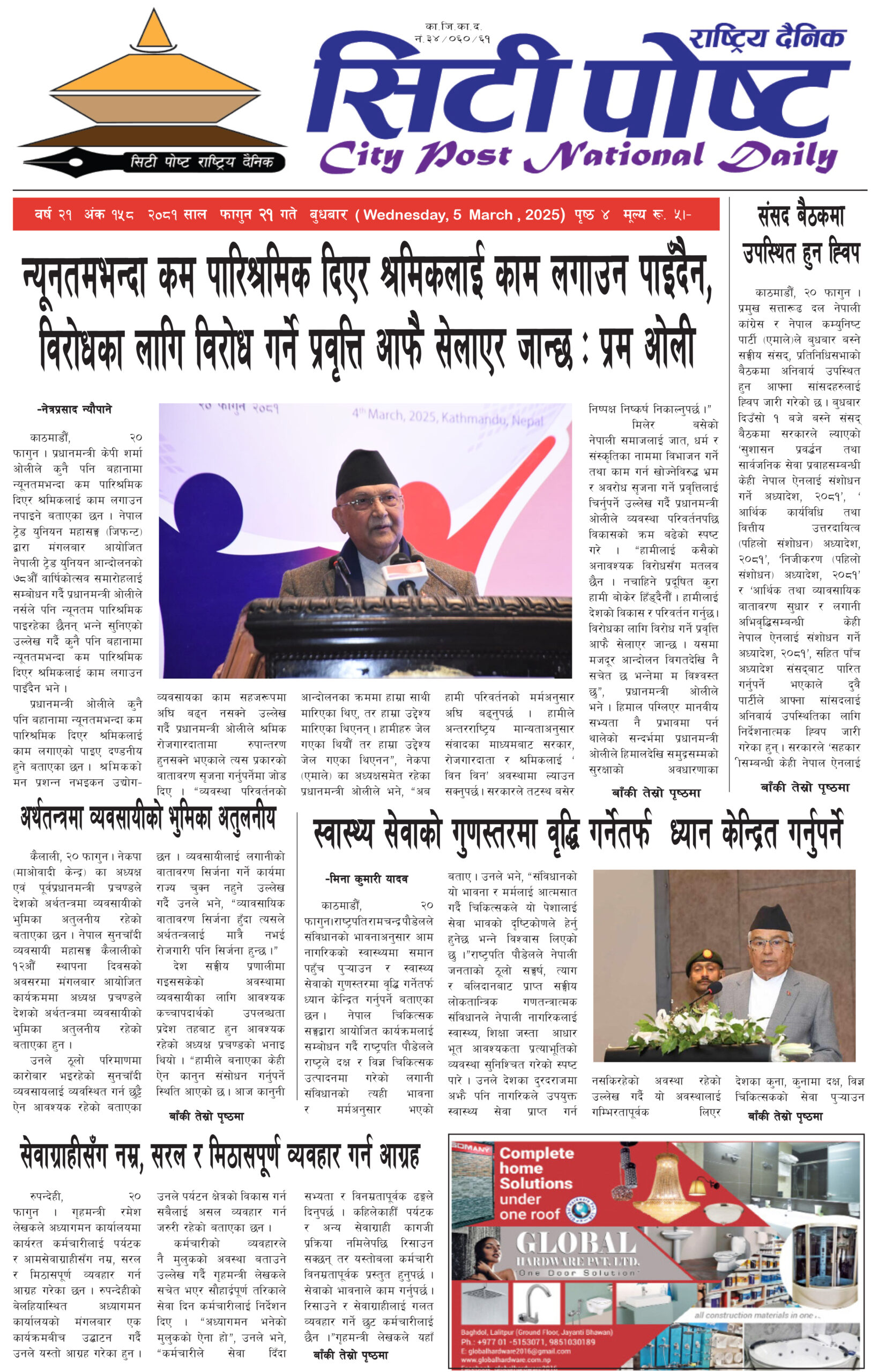 सिटीपोष्ट राष्ट्रिय दैनिक २०८१ फागुन २१