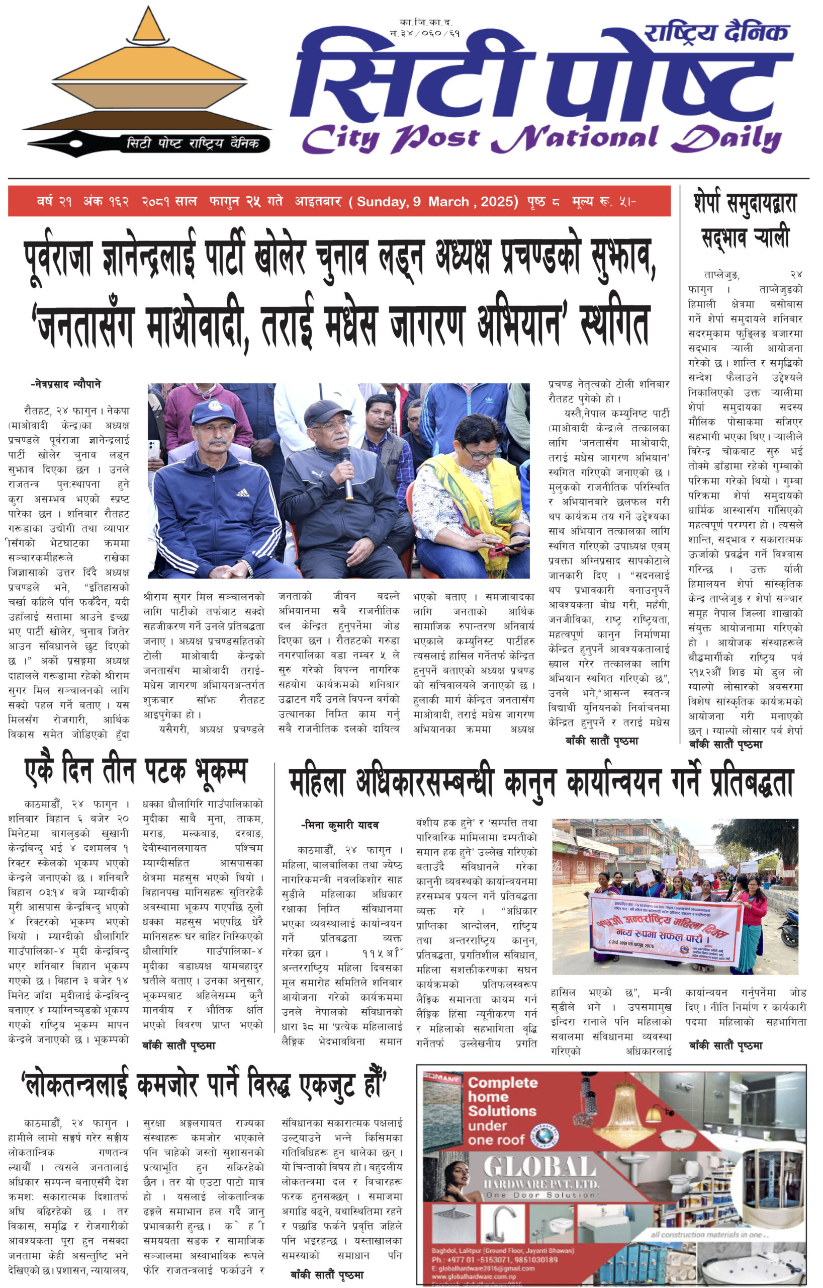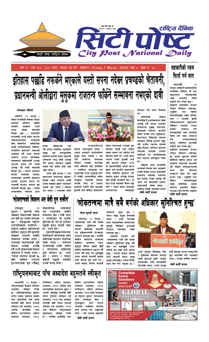 सिटीपोष्ट राष्ट्रिय दैनिक २०८१ फागुन २६