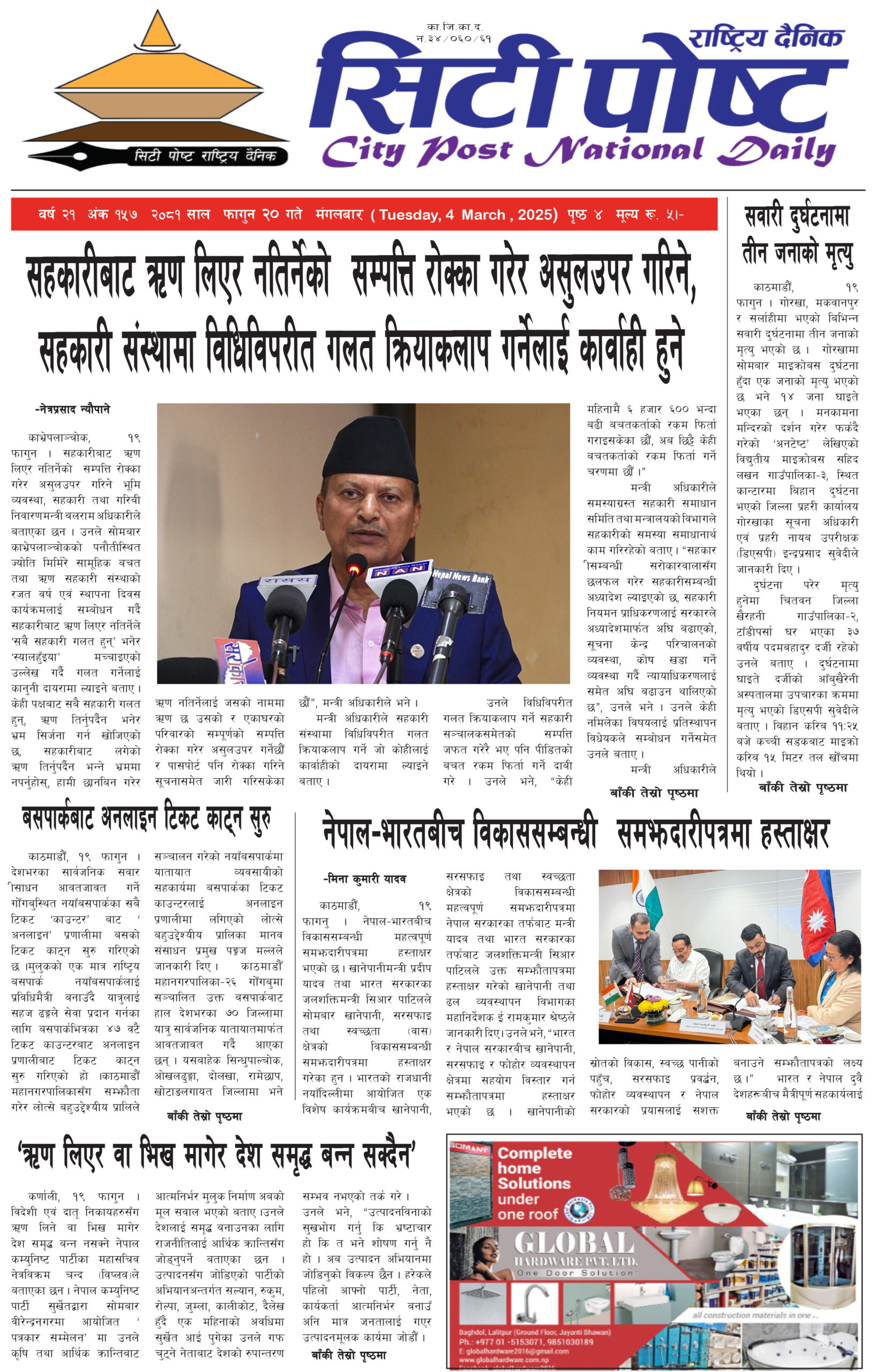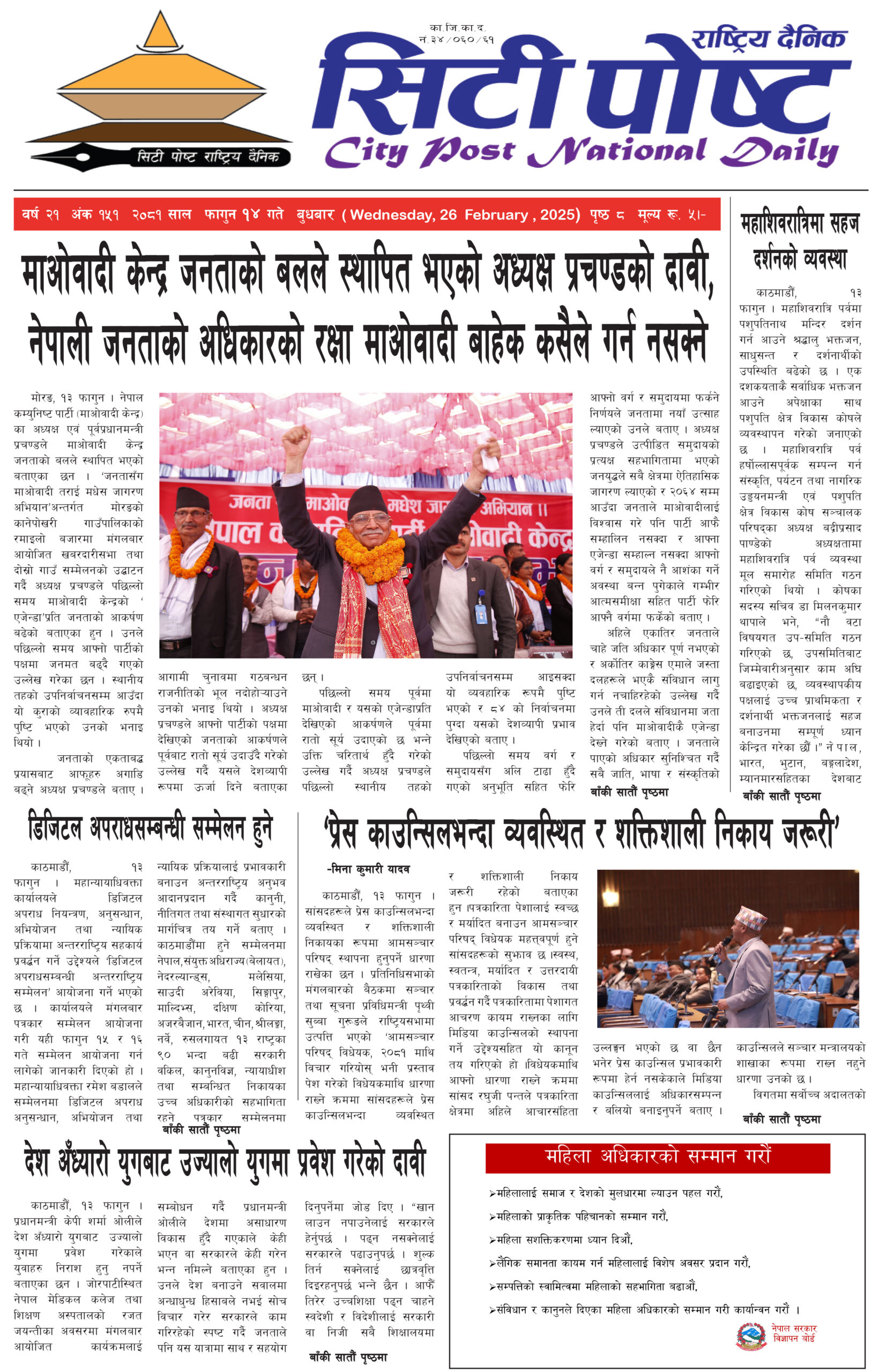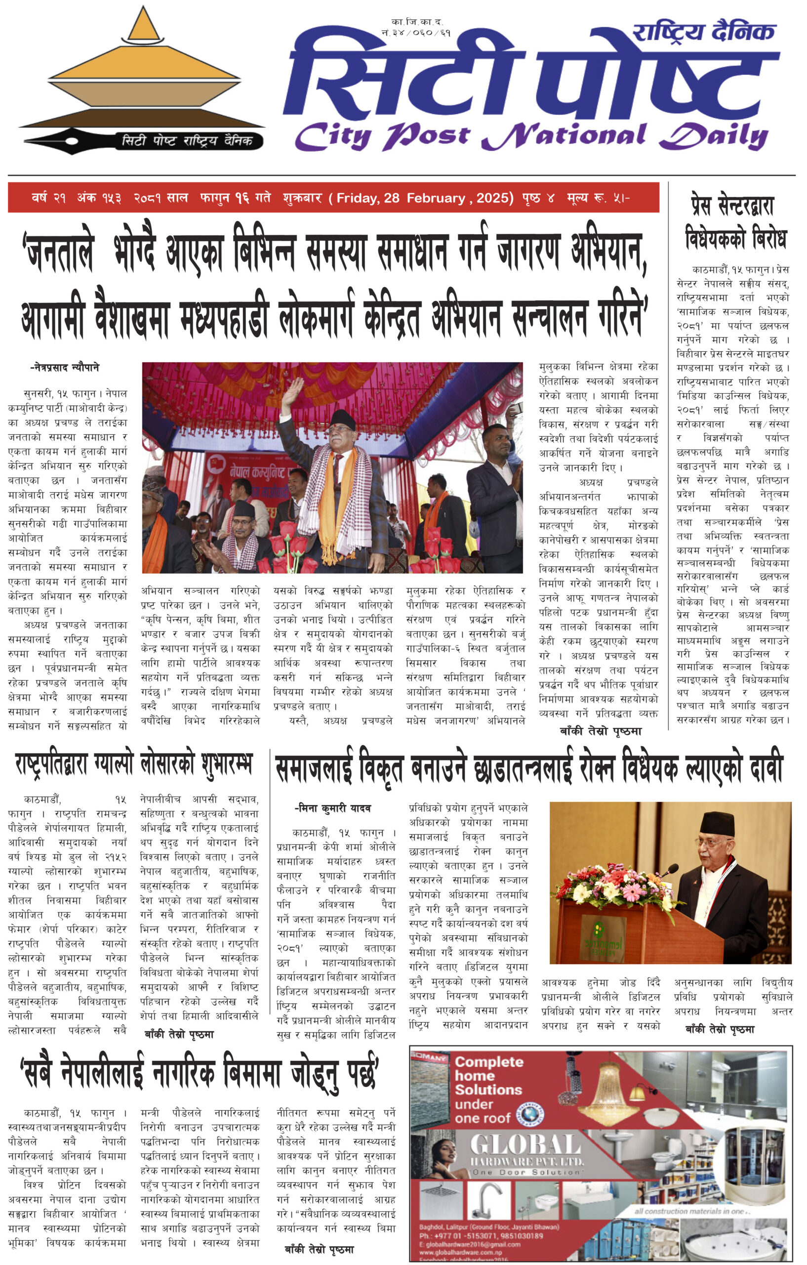 सिटीपोष्ट राष्ट्रिय दैनिक २०८१ फागुन ९