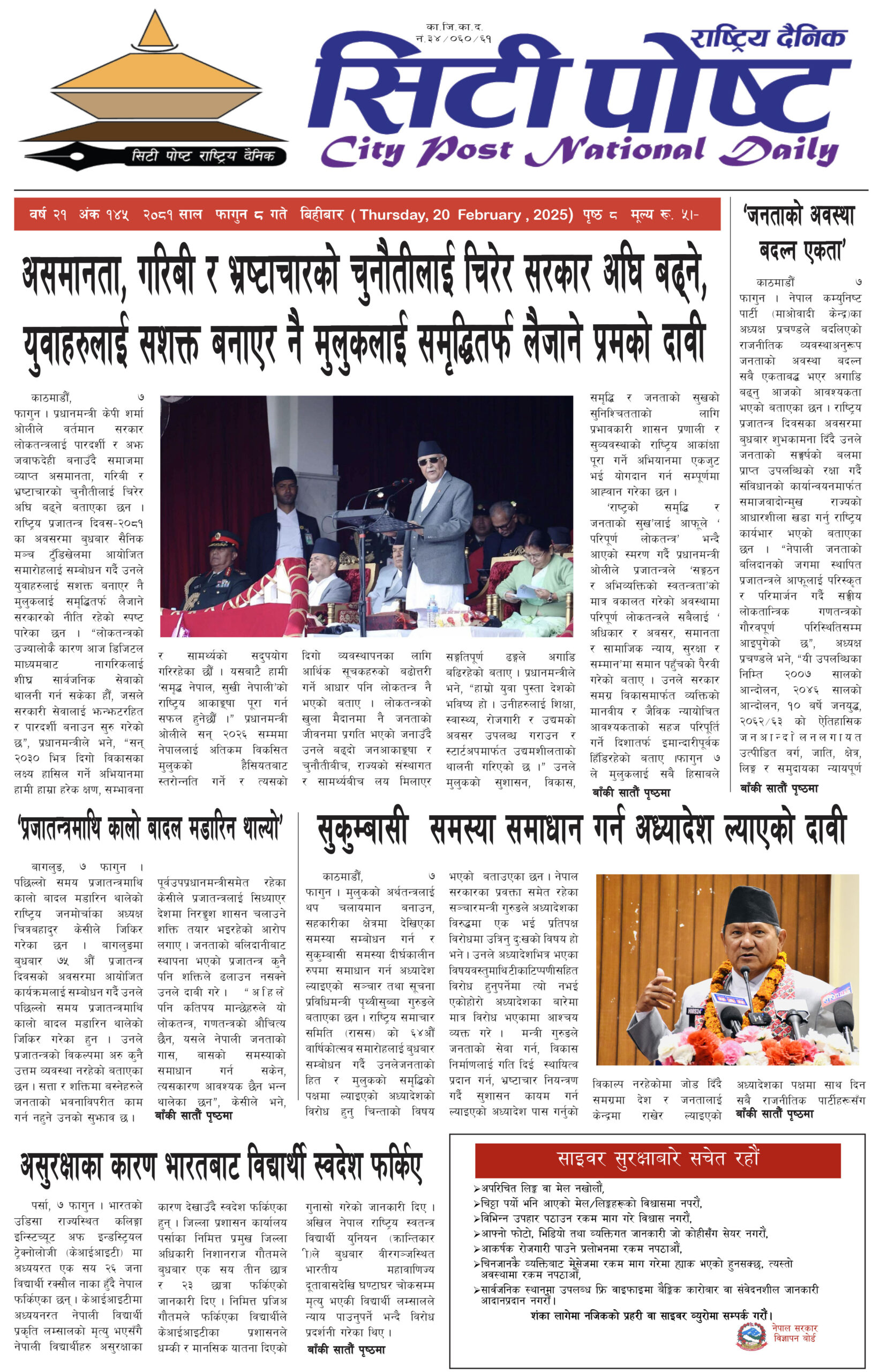 सिटीपोष्ट राष्ट्रिय दैनिक २०८१ फागुन ८
