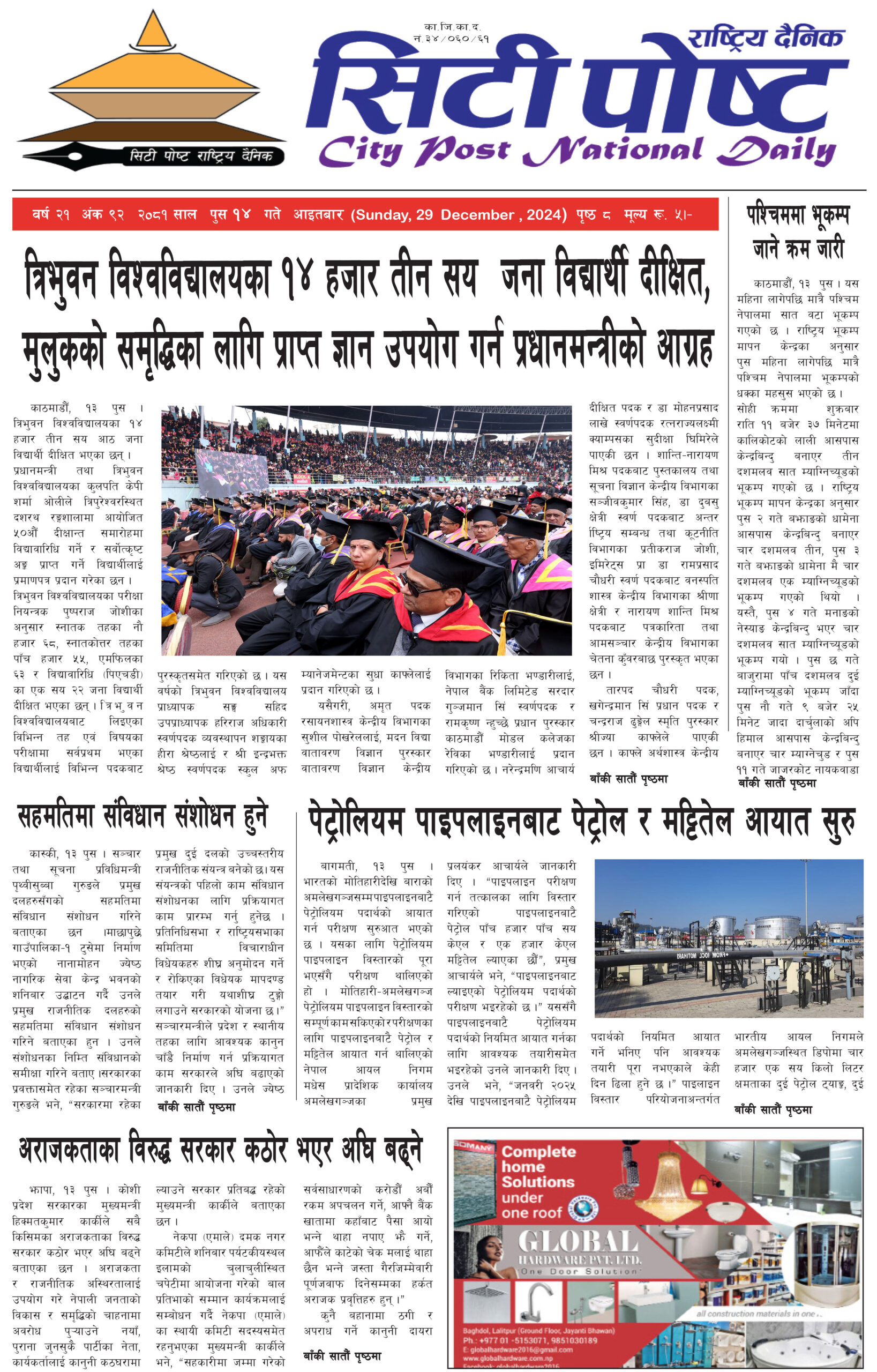 सिटीपोष्ट राष्ट्रिय दैनिक २०८१ पुस १८