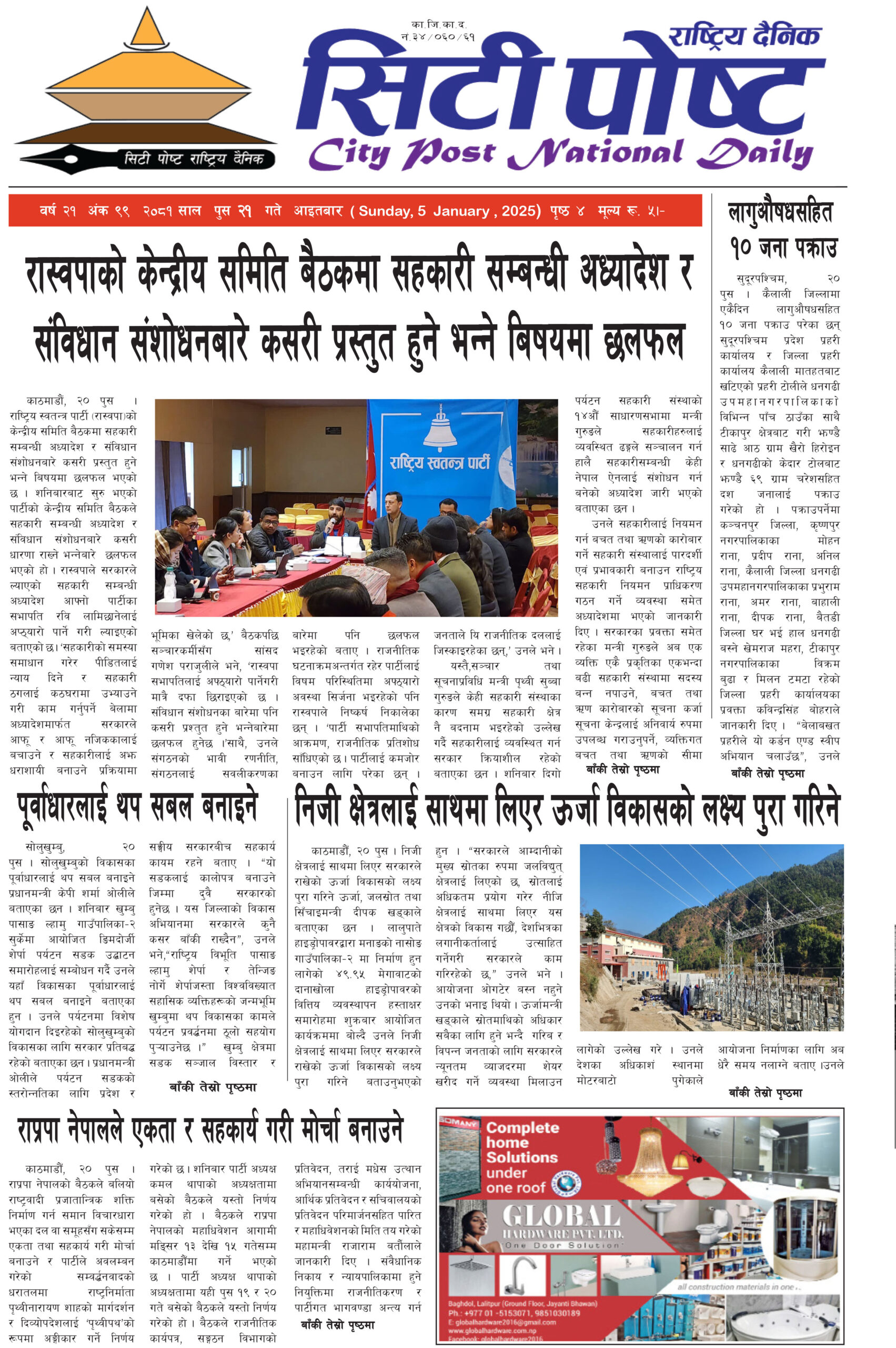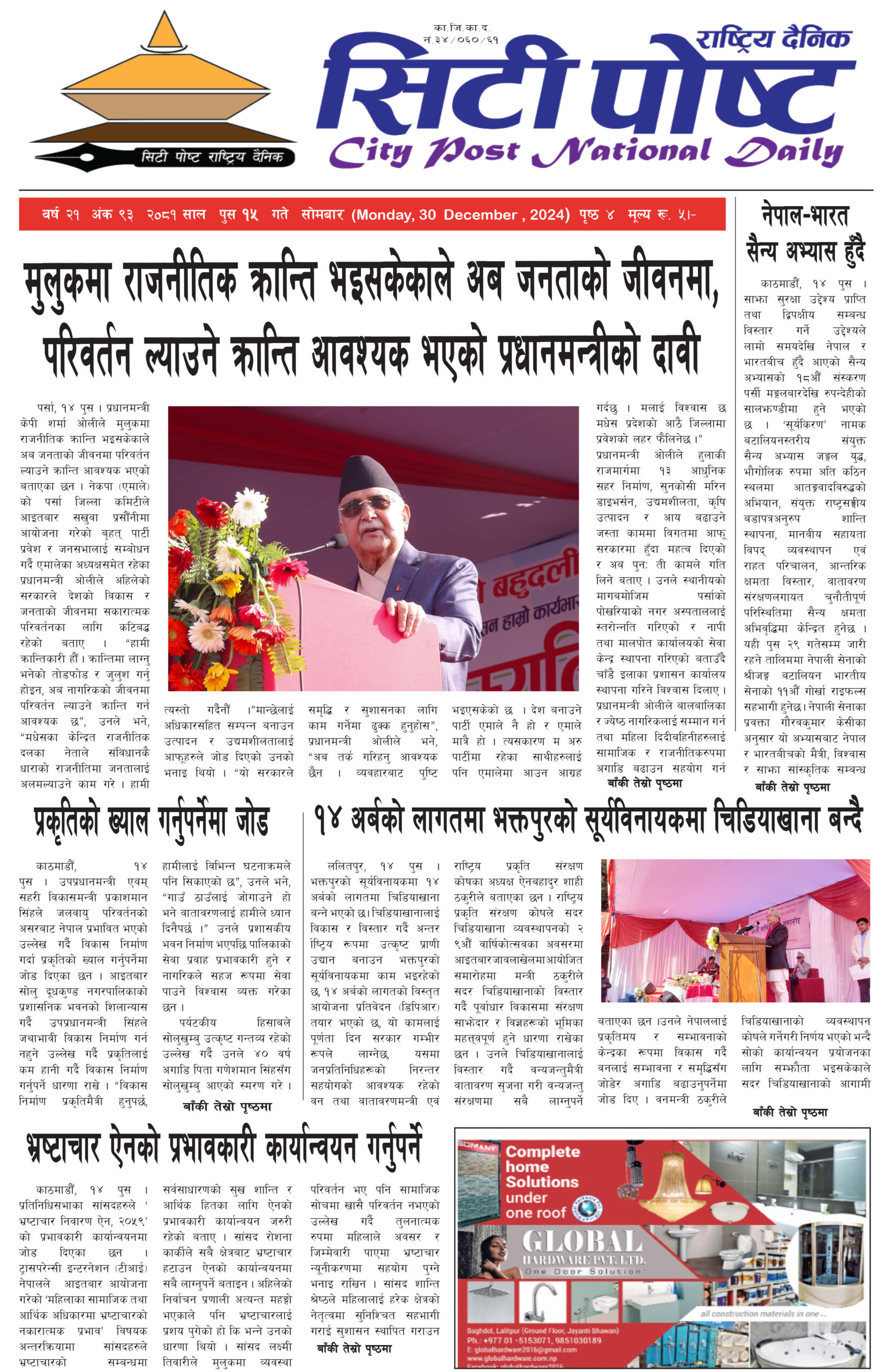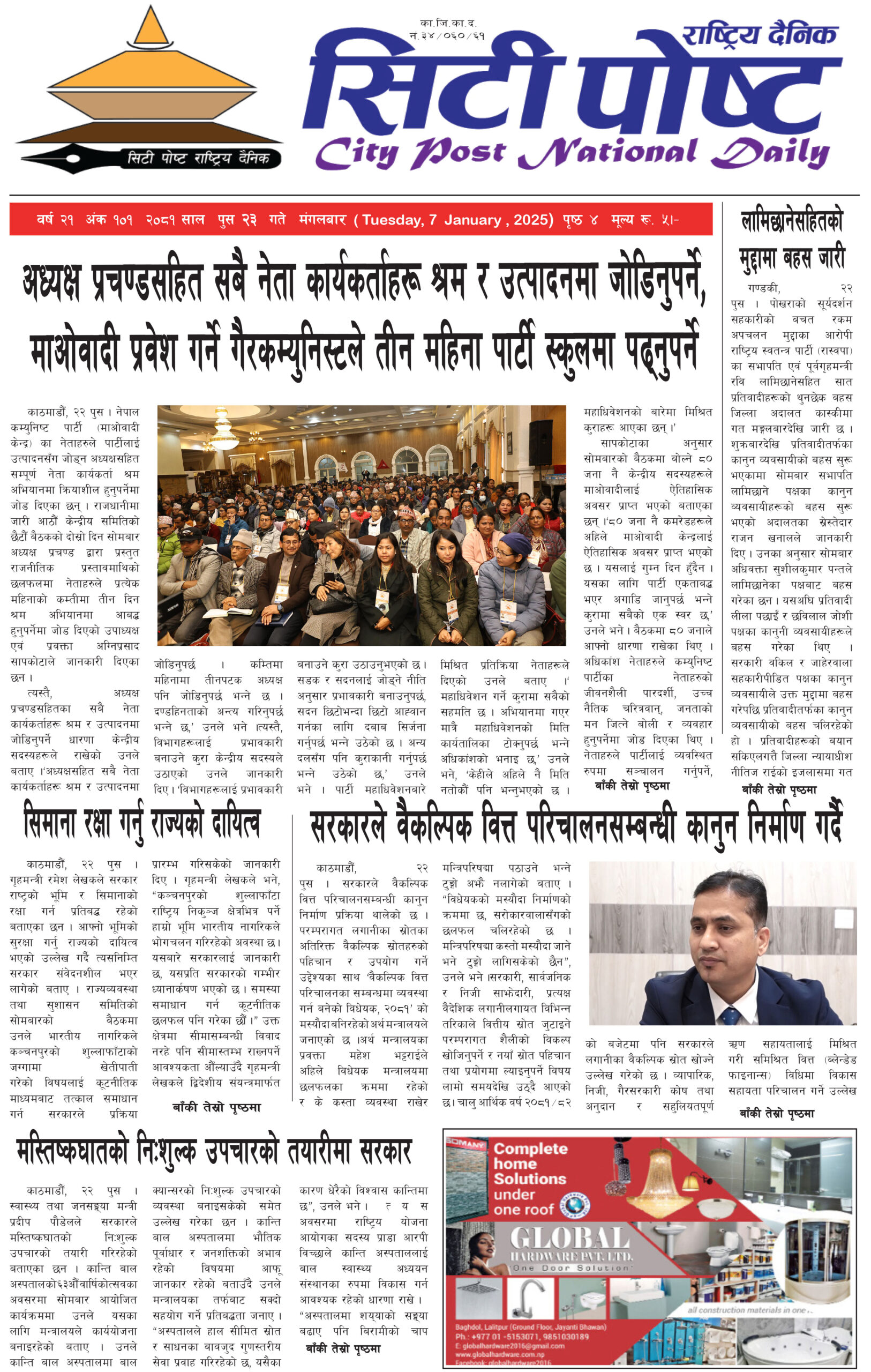 सिटीपोष्ट राष्ट्रिय दैनिक २०८१ पुस १९