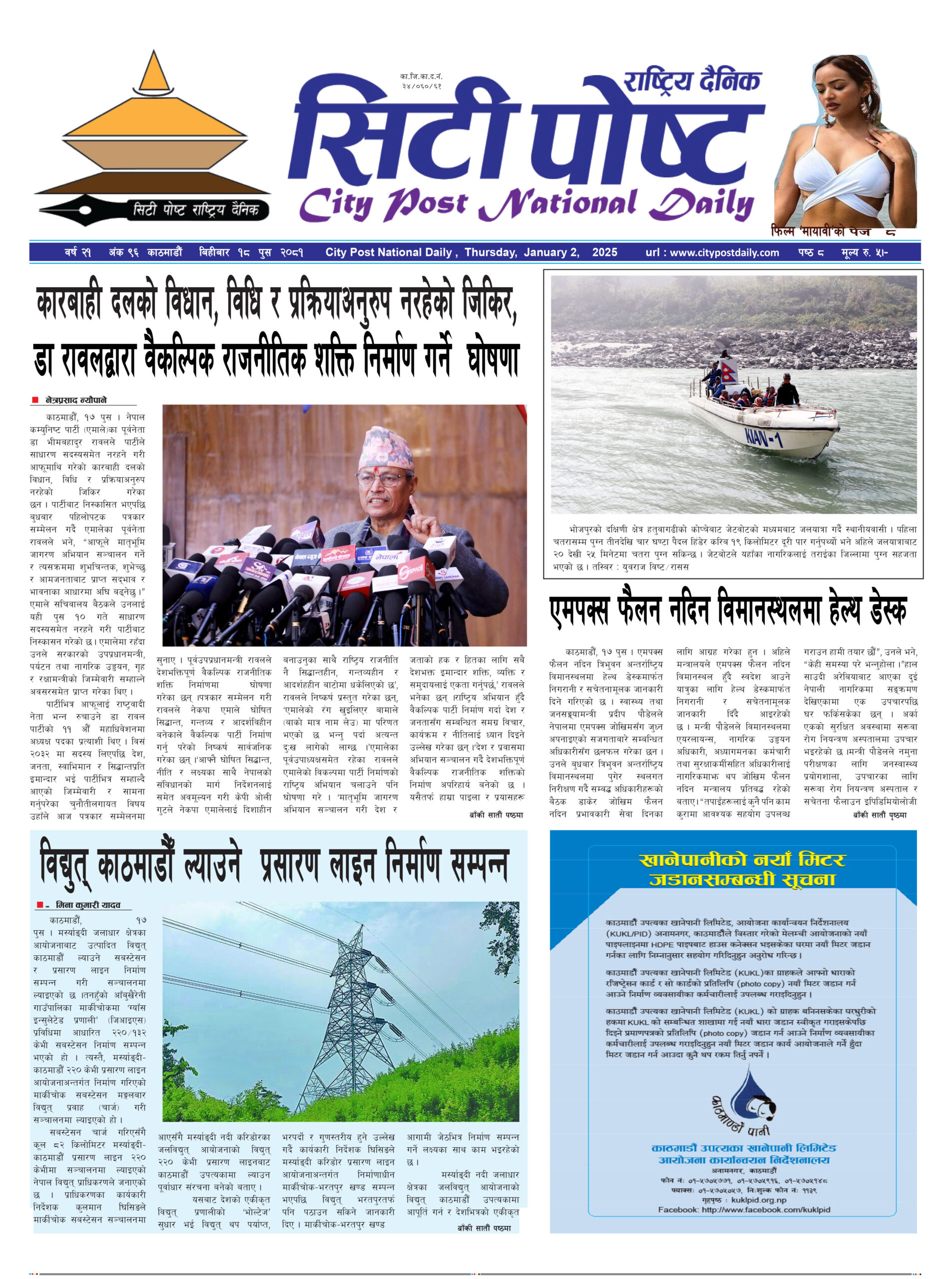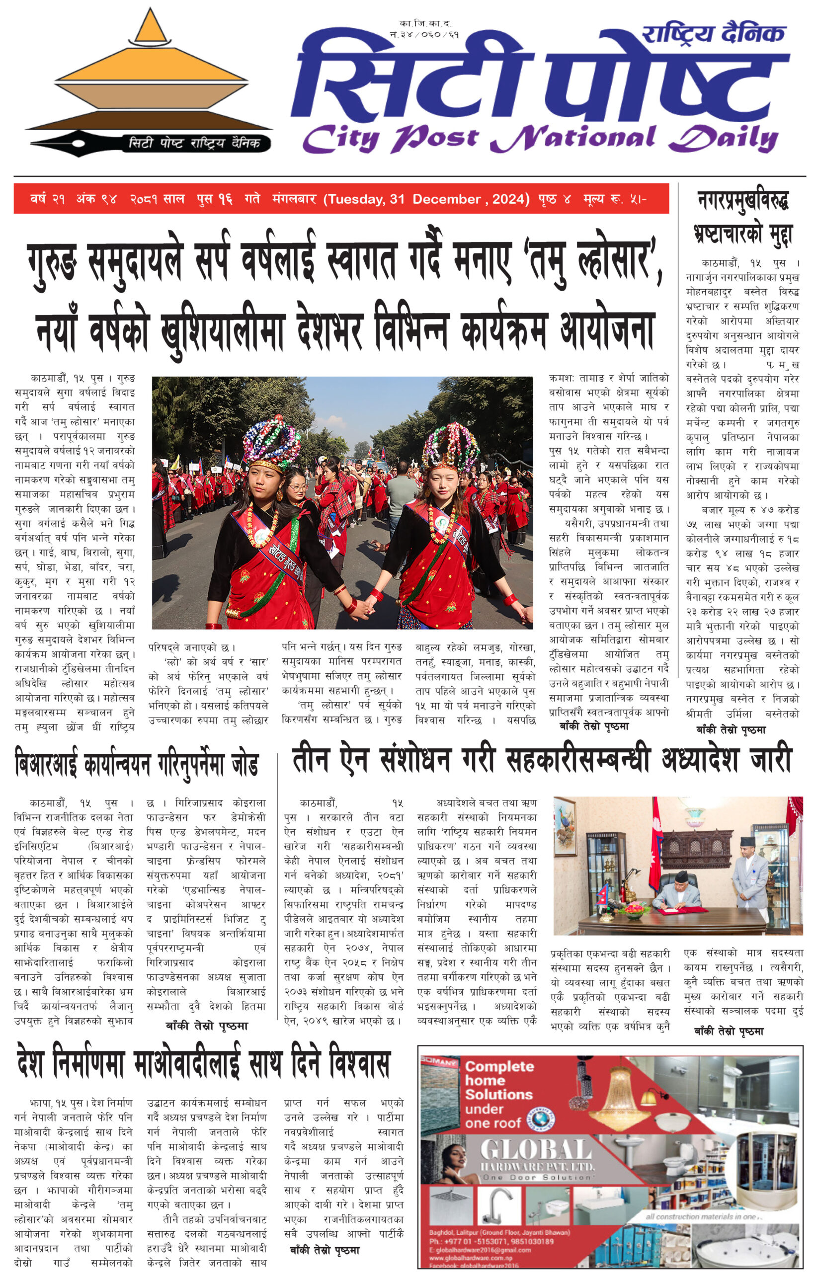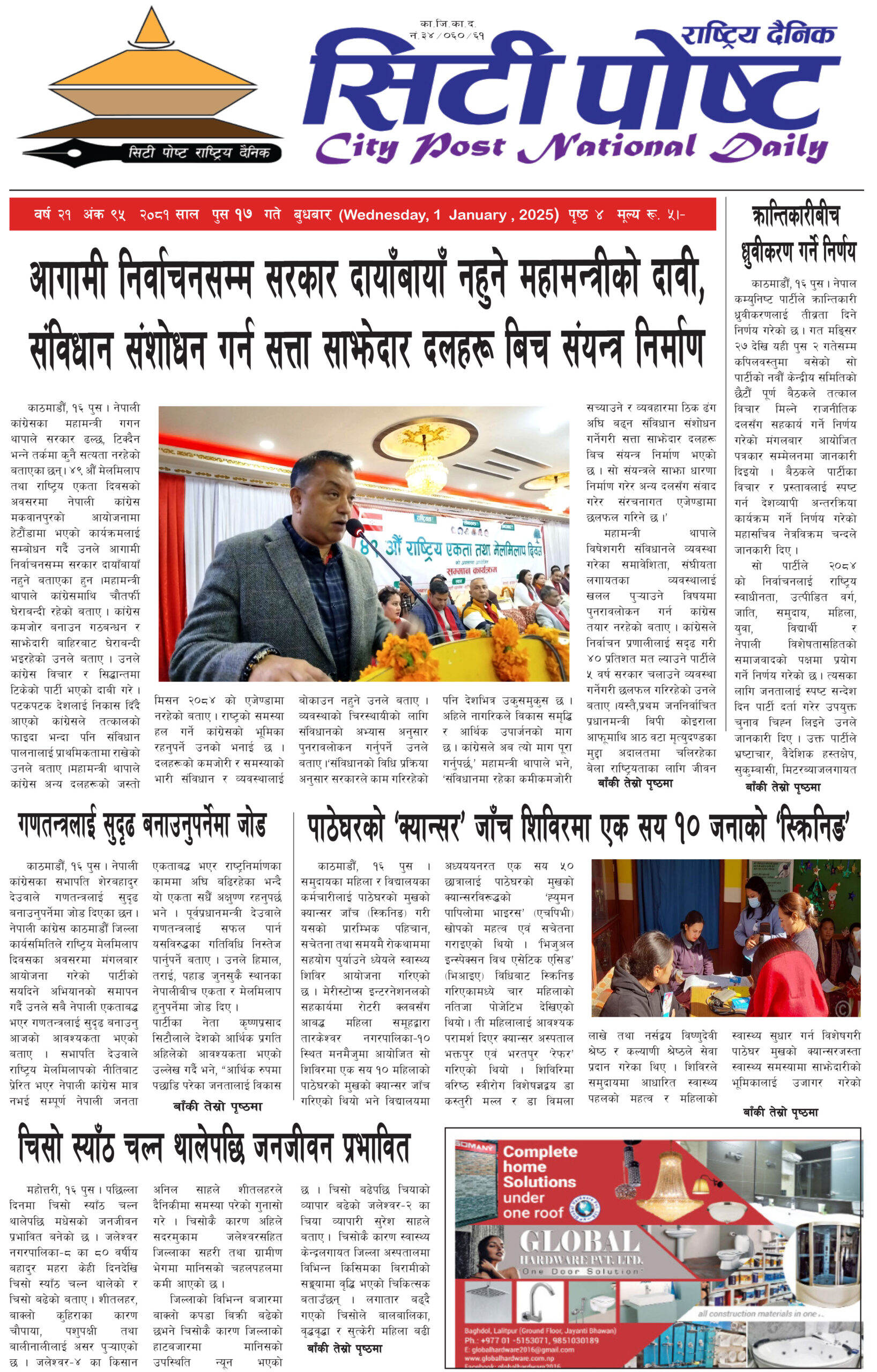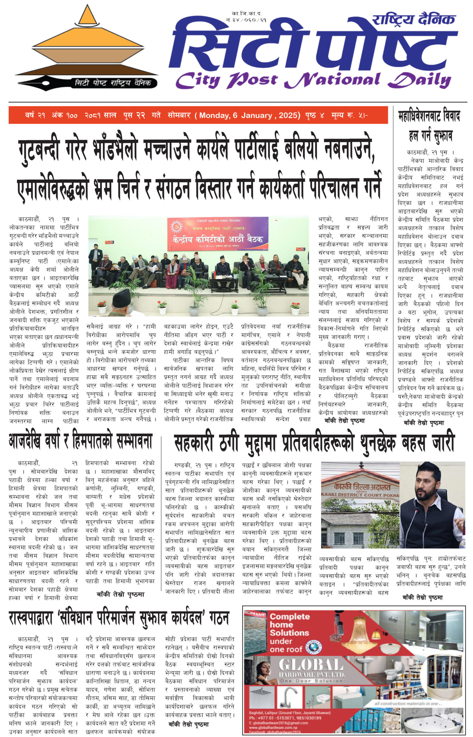 सिटीपोष्ट राष्ट्रिय दैनिक २०८१ पुस १९