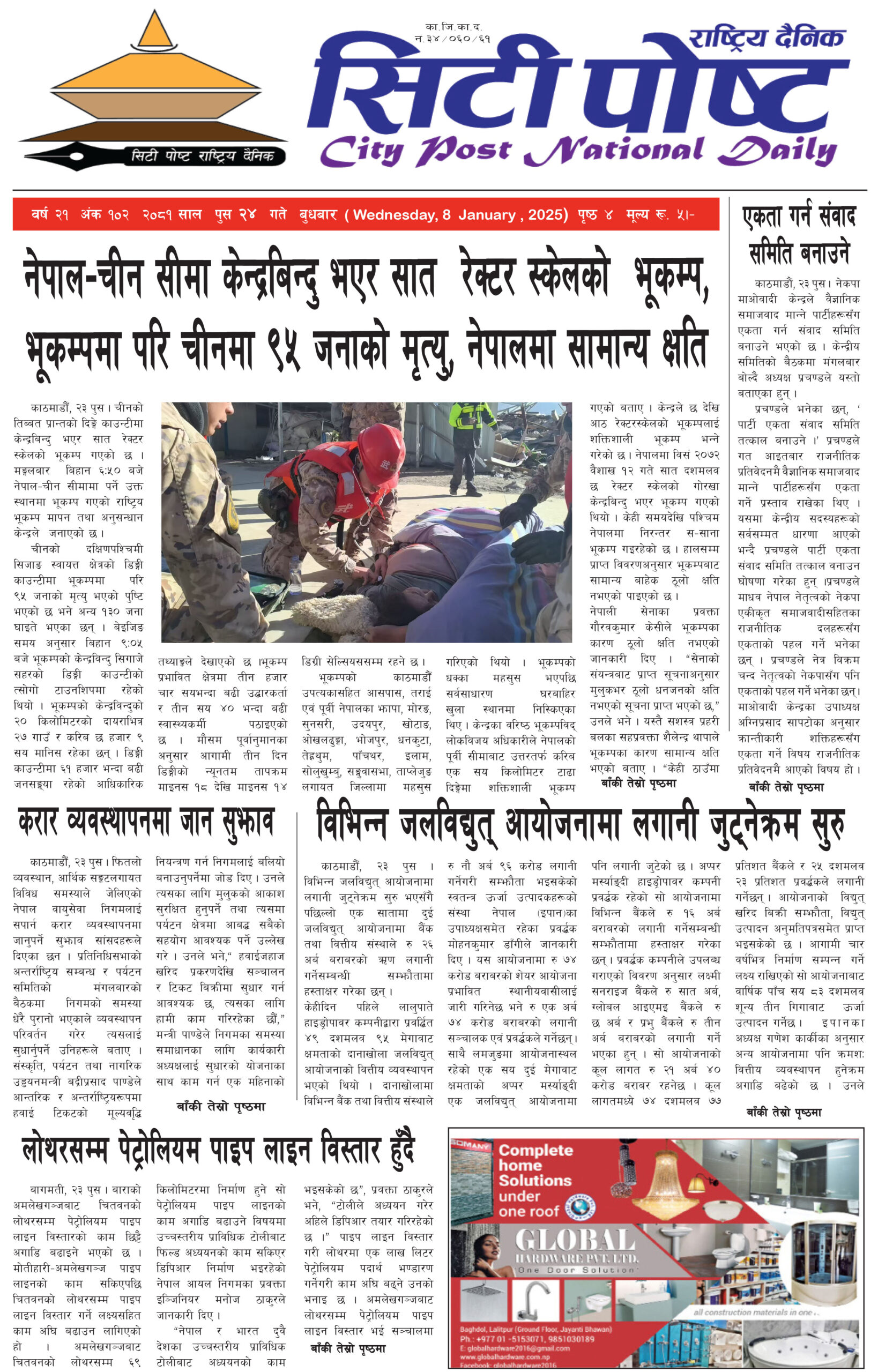 सिटीपोष्ट राष्ट्रिय दैनिक २०८१ पुस २४