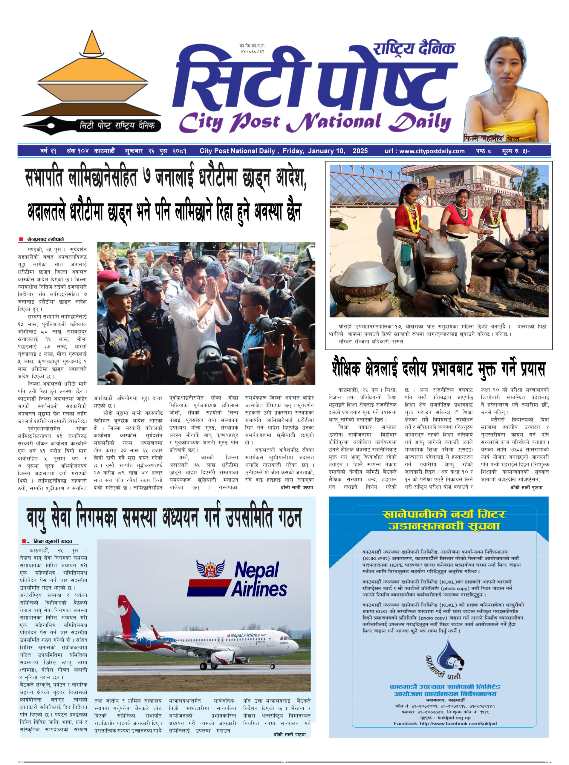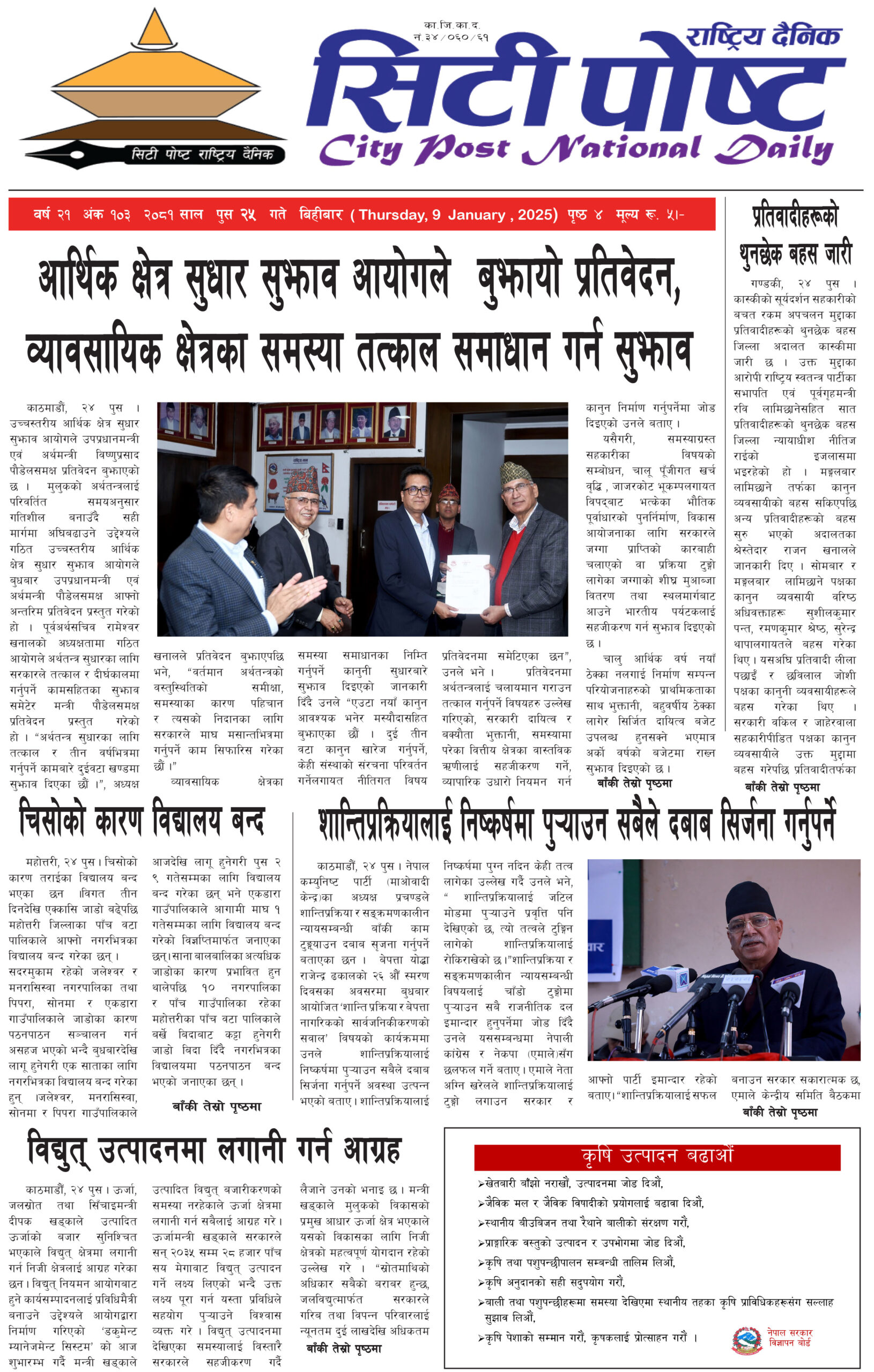 सिटीपोष्ट राष्ट्रिय दैनिक २०८१ पुस २५