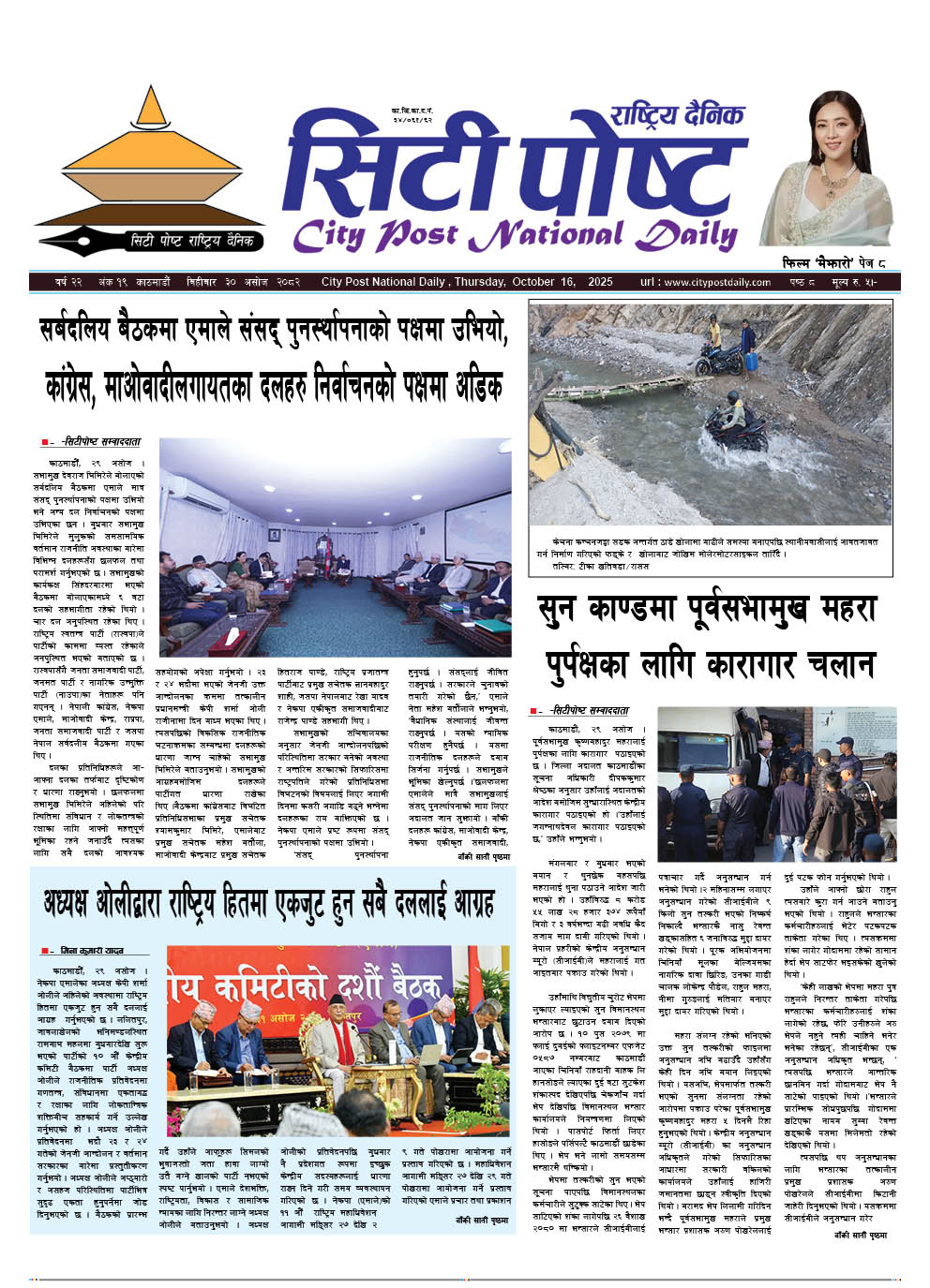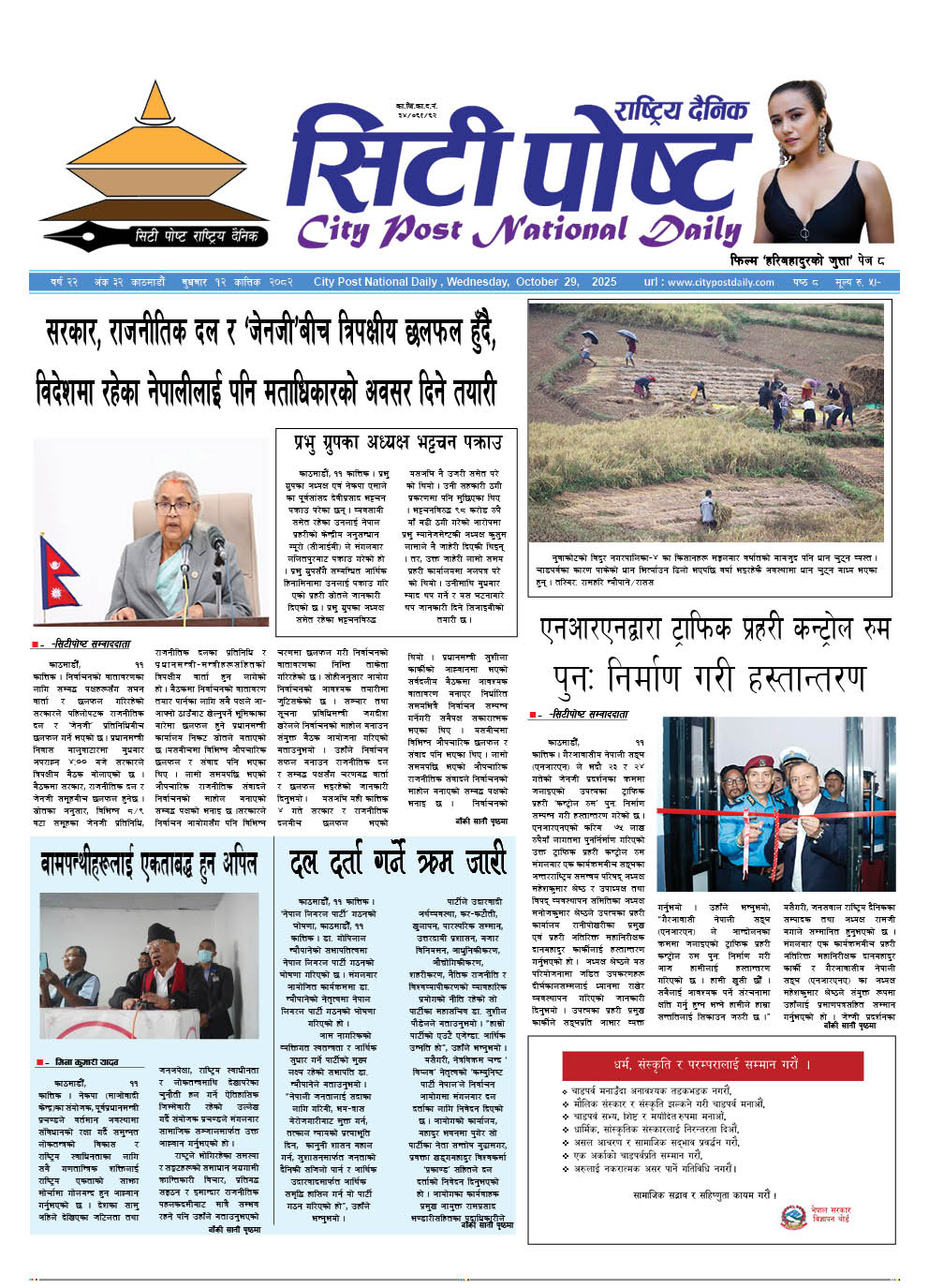 सिटीपोष्ट राष्ट्रिय दैनिक २०८२ असोज २९