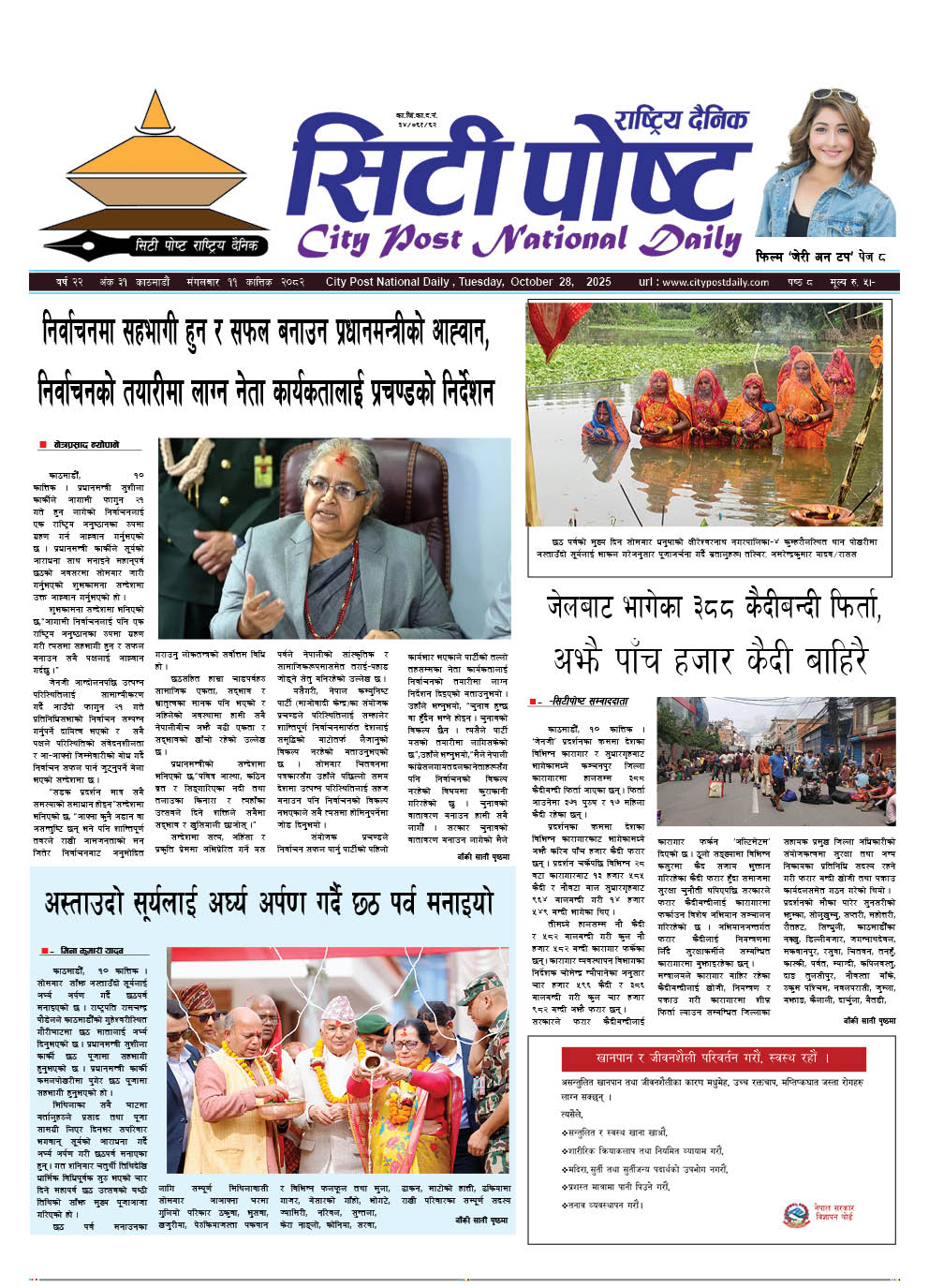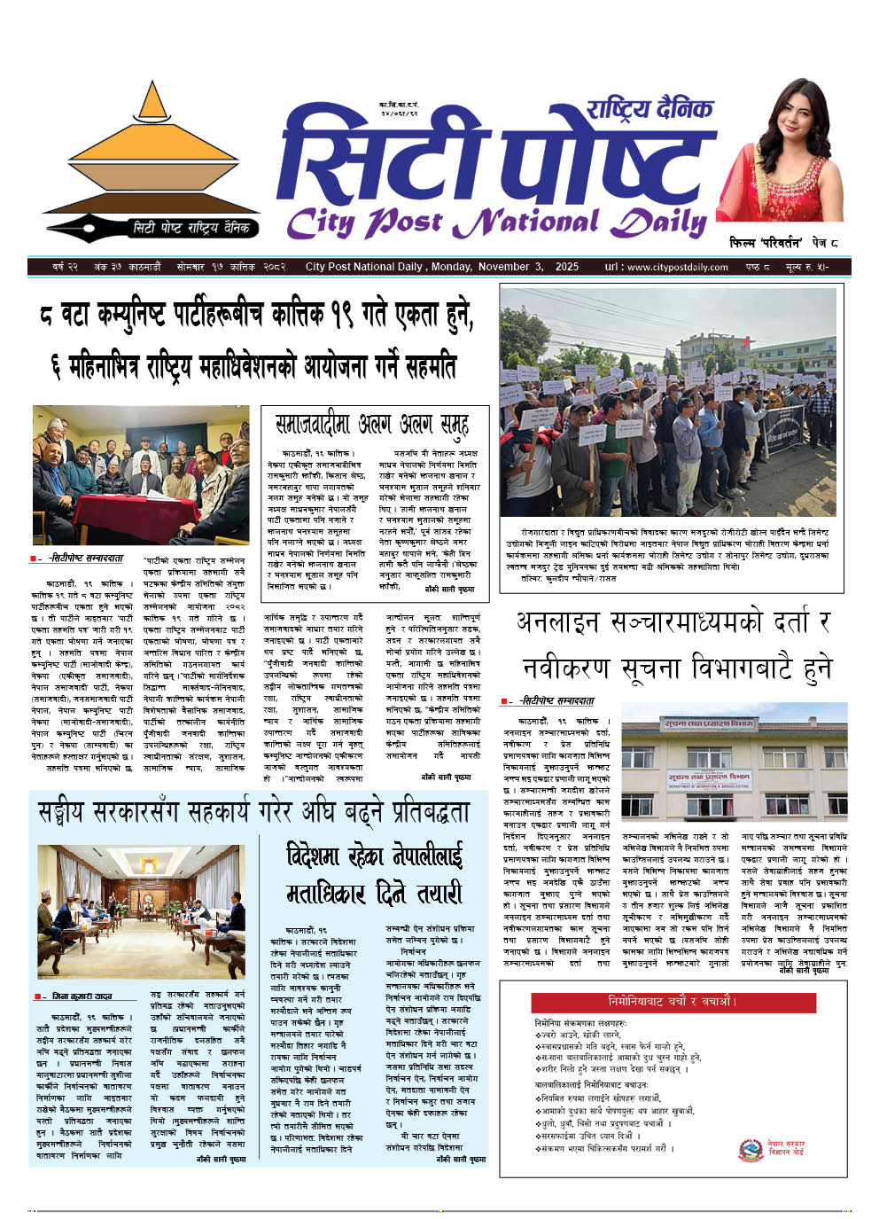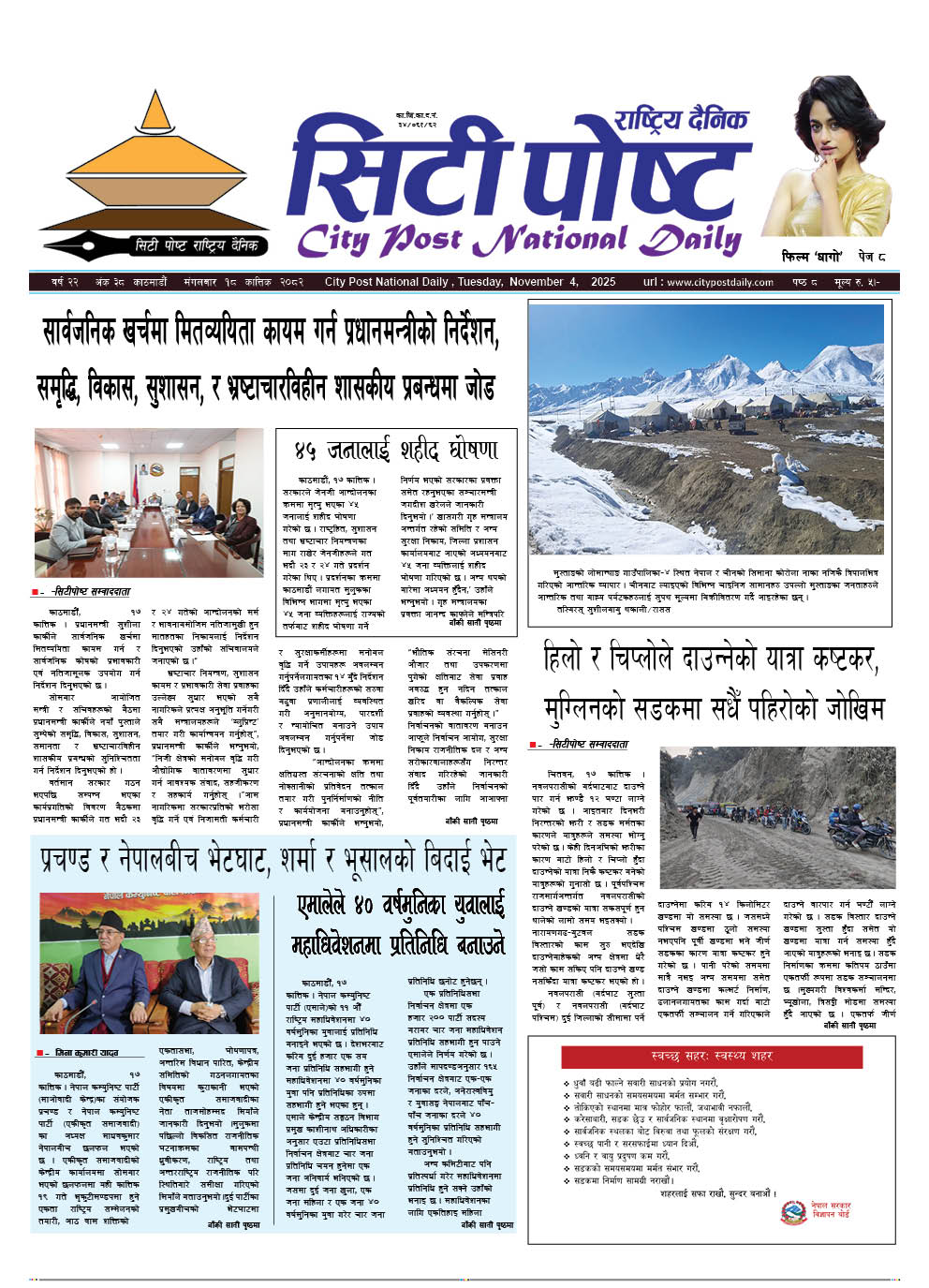 सिटीपोष्ट राष्ट्रिय दैनिक २०८२ कात्तिक ९