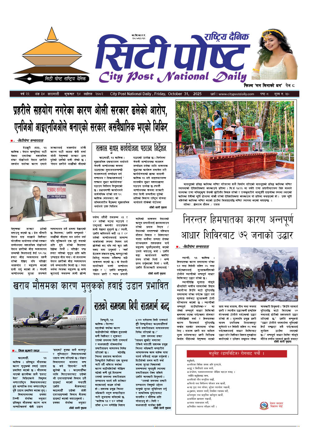 सिटीपोष्ट राष्ट्रिय दैनिक २०८२ असोज ३१
