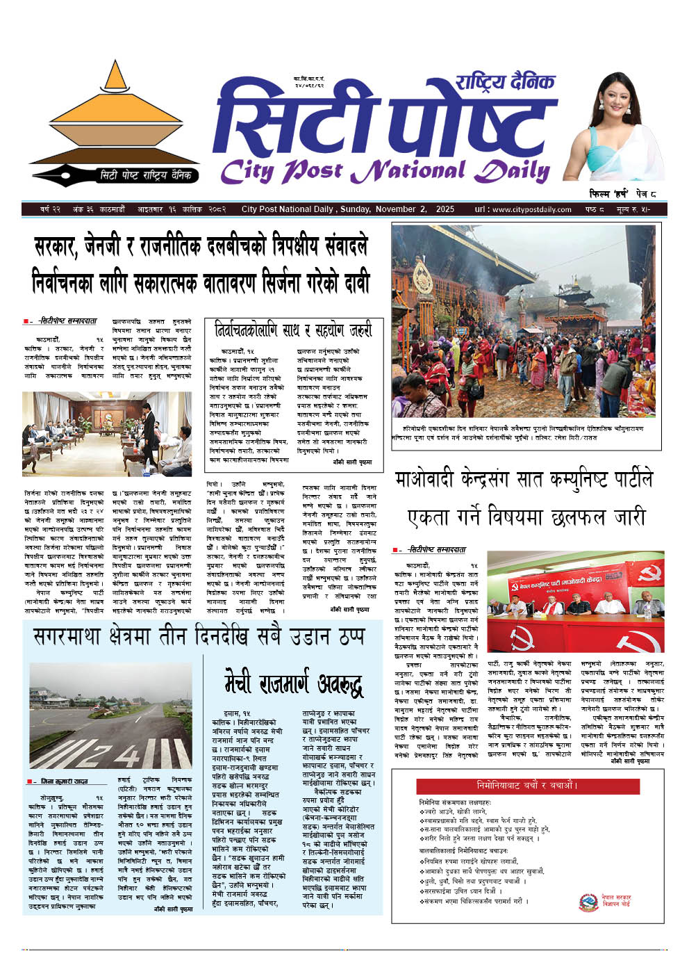 सिटीपोष्ट राष्ट्रिय दैनिक २०८२ कात्तिक १४