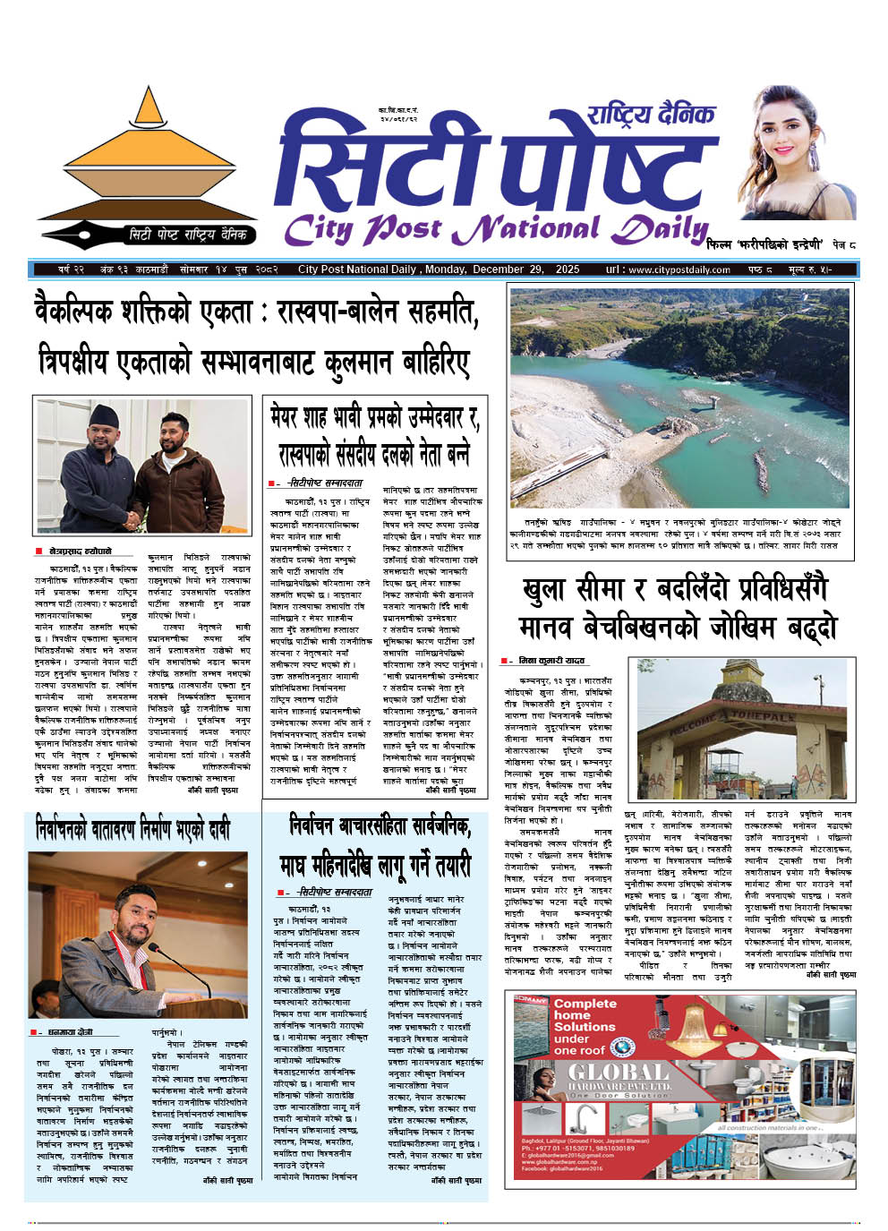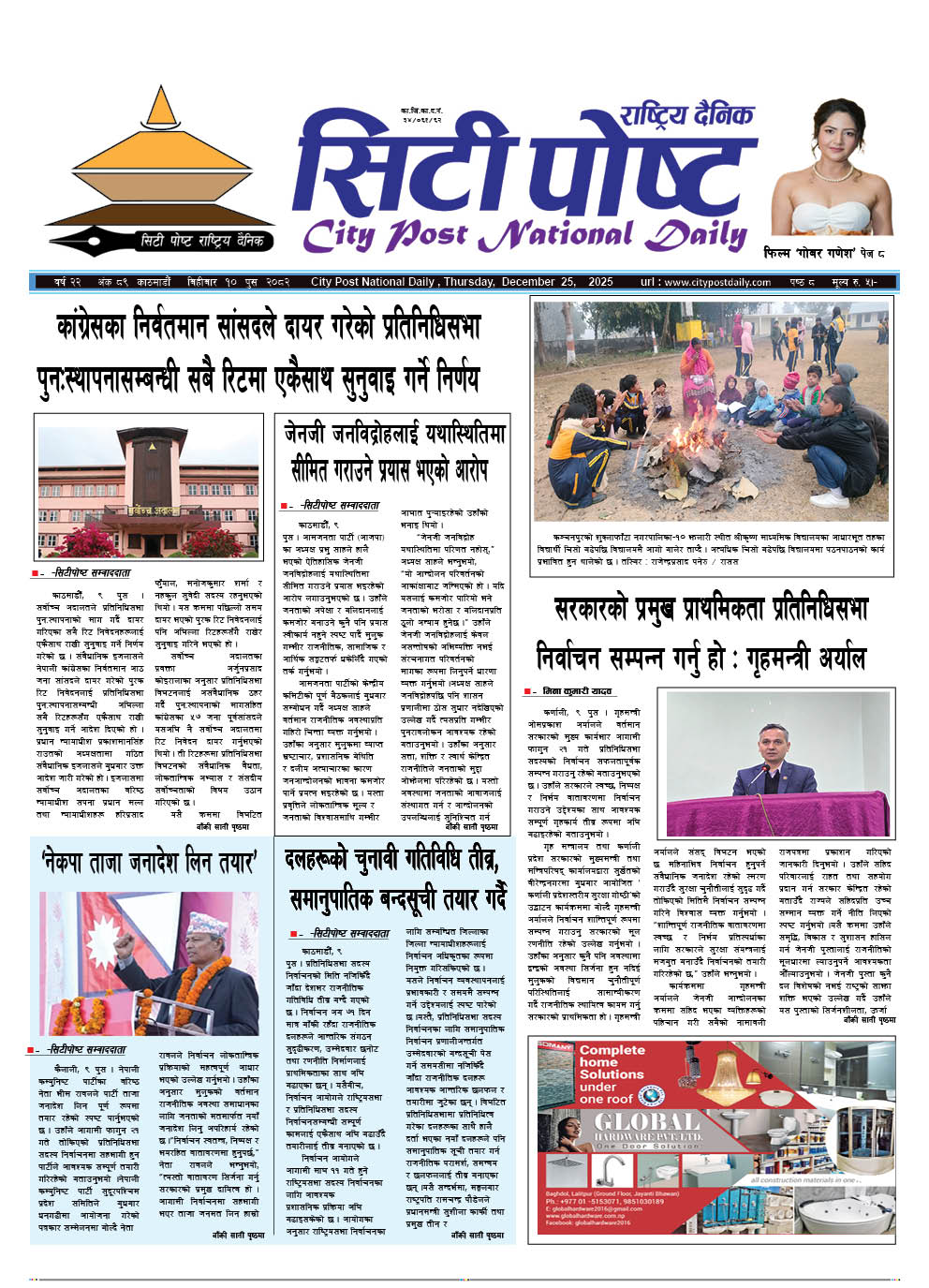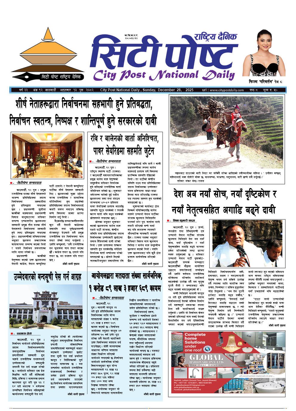 सिटीपोष्ट राष्ट्रिय दैनिक २०८२ पुस ९