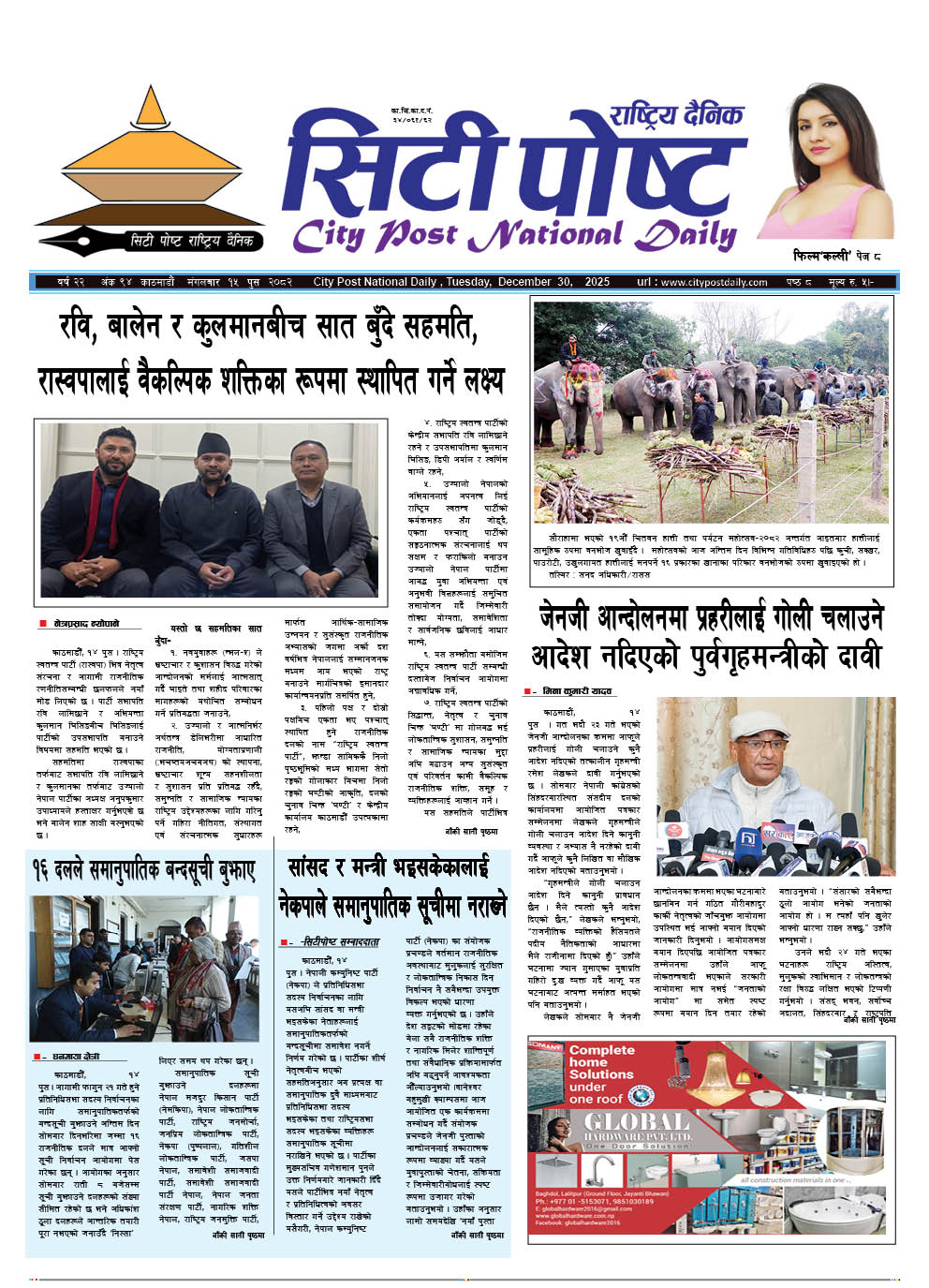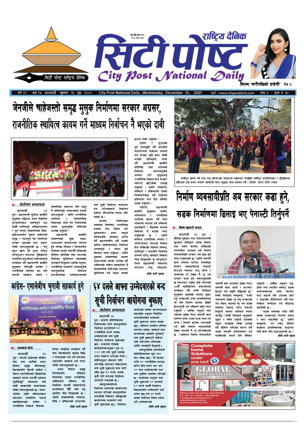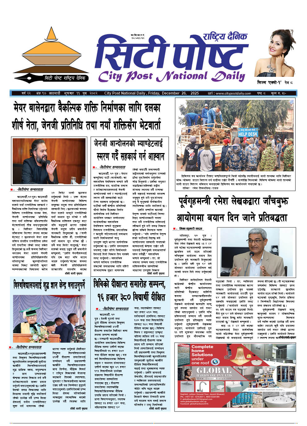 सिटीपोष्ट राष्ट्रिय दैनिक २०८२ पुस ९