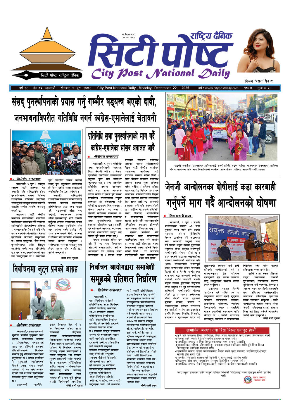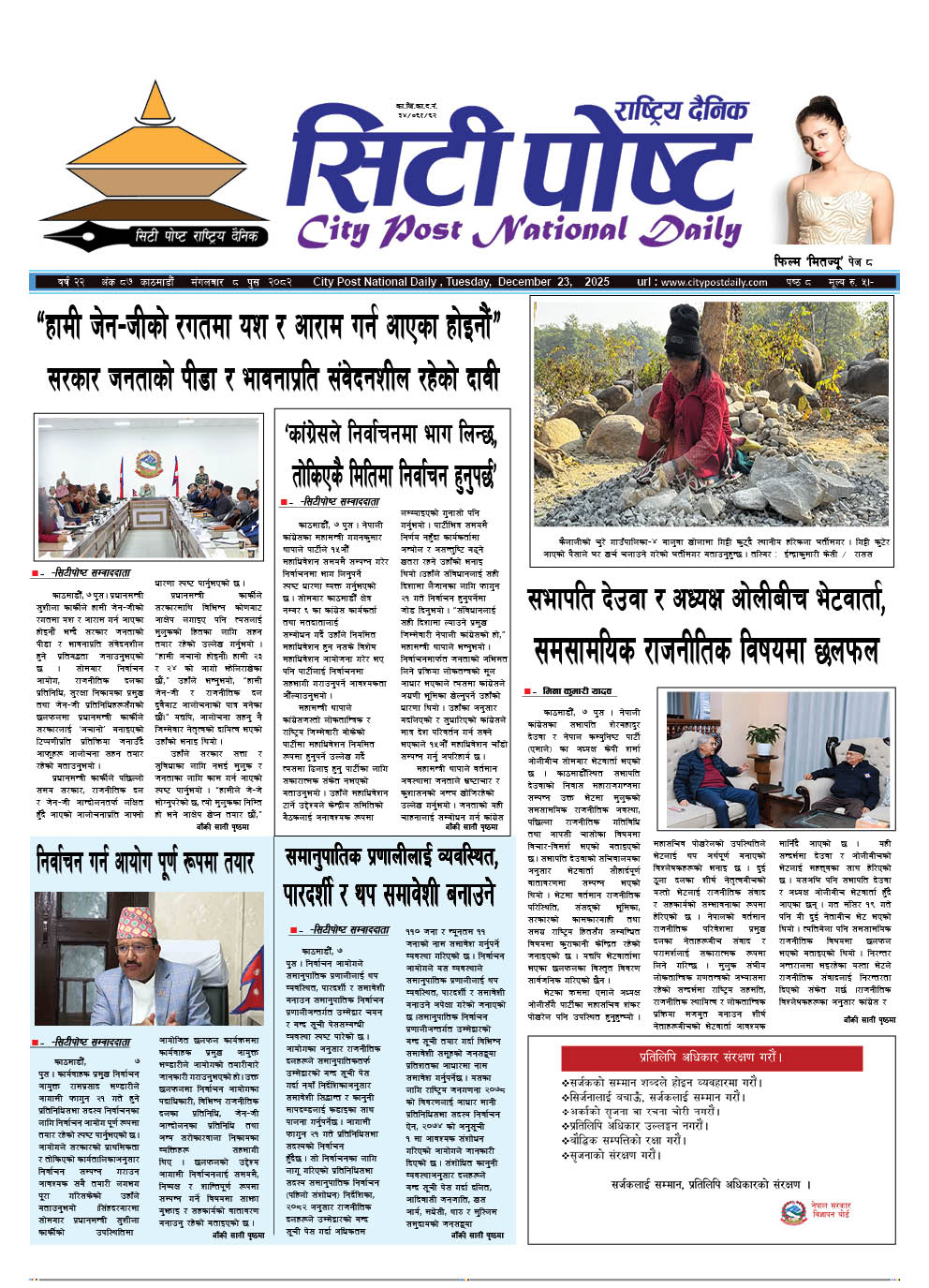 सिटीपोष्ट राष्ट्रिय दैनिक २०८२ पुस ८