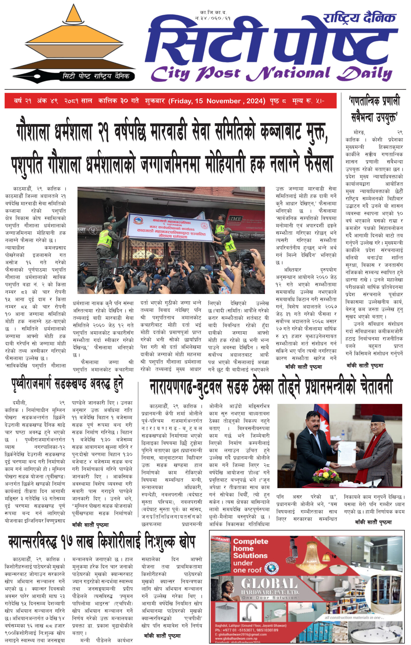 सिटीपोष्ट राष्ट्रिय दैनिक २०८१ कार्तिक ३०