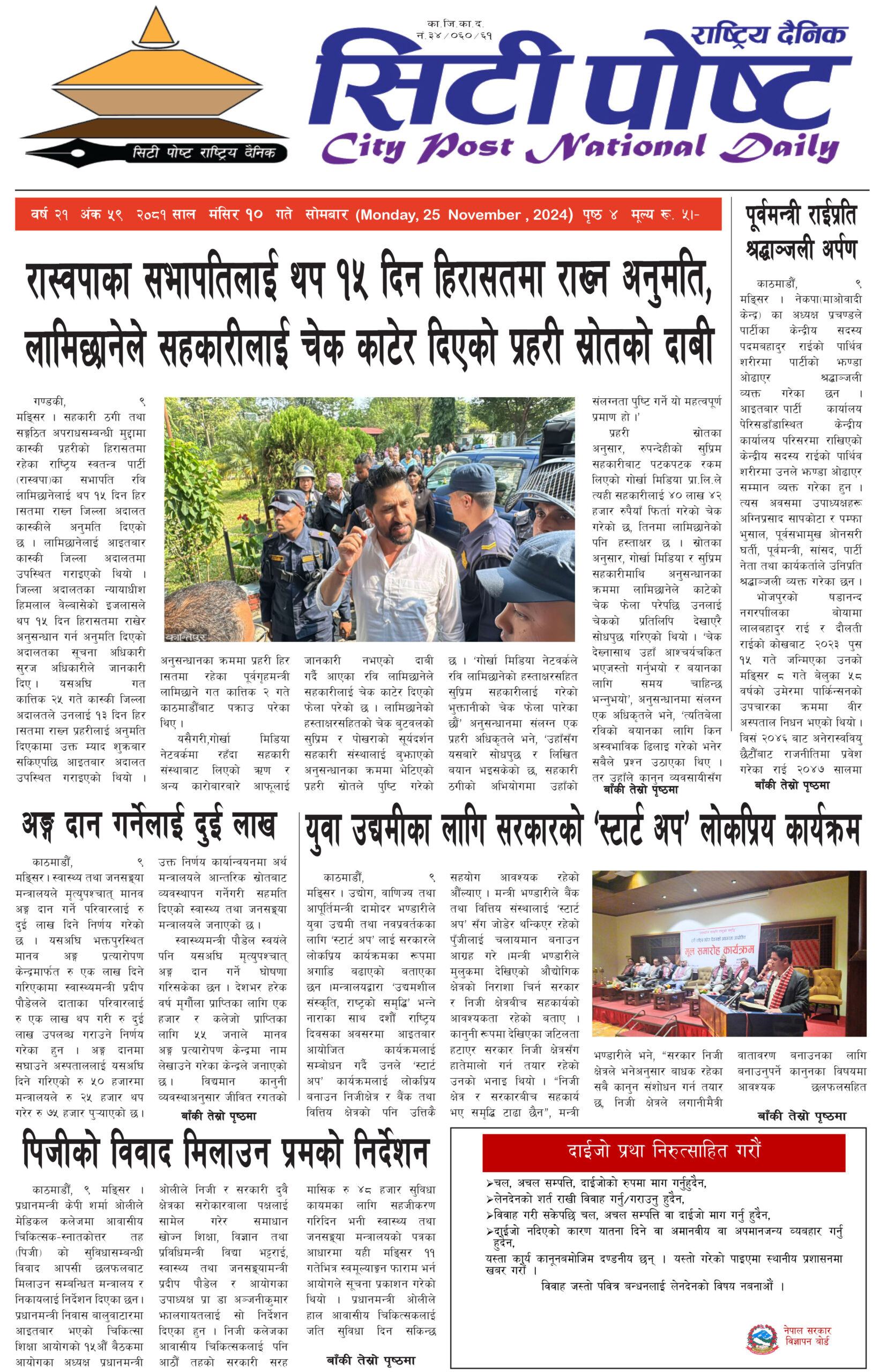 सिटीपोष्ट राष्ट्रिय दैनिक २०८१ मंसिर ३