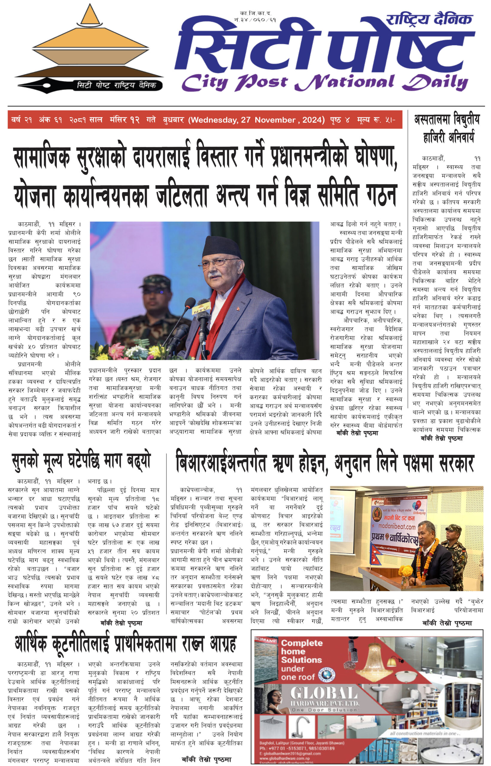 सिटीपोष्ट राष्ट्रिय दैनिक २०८१ मंसिर ६