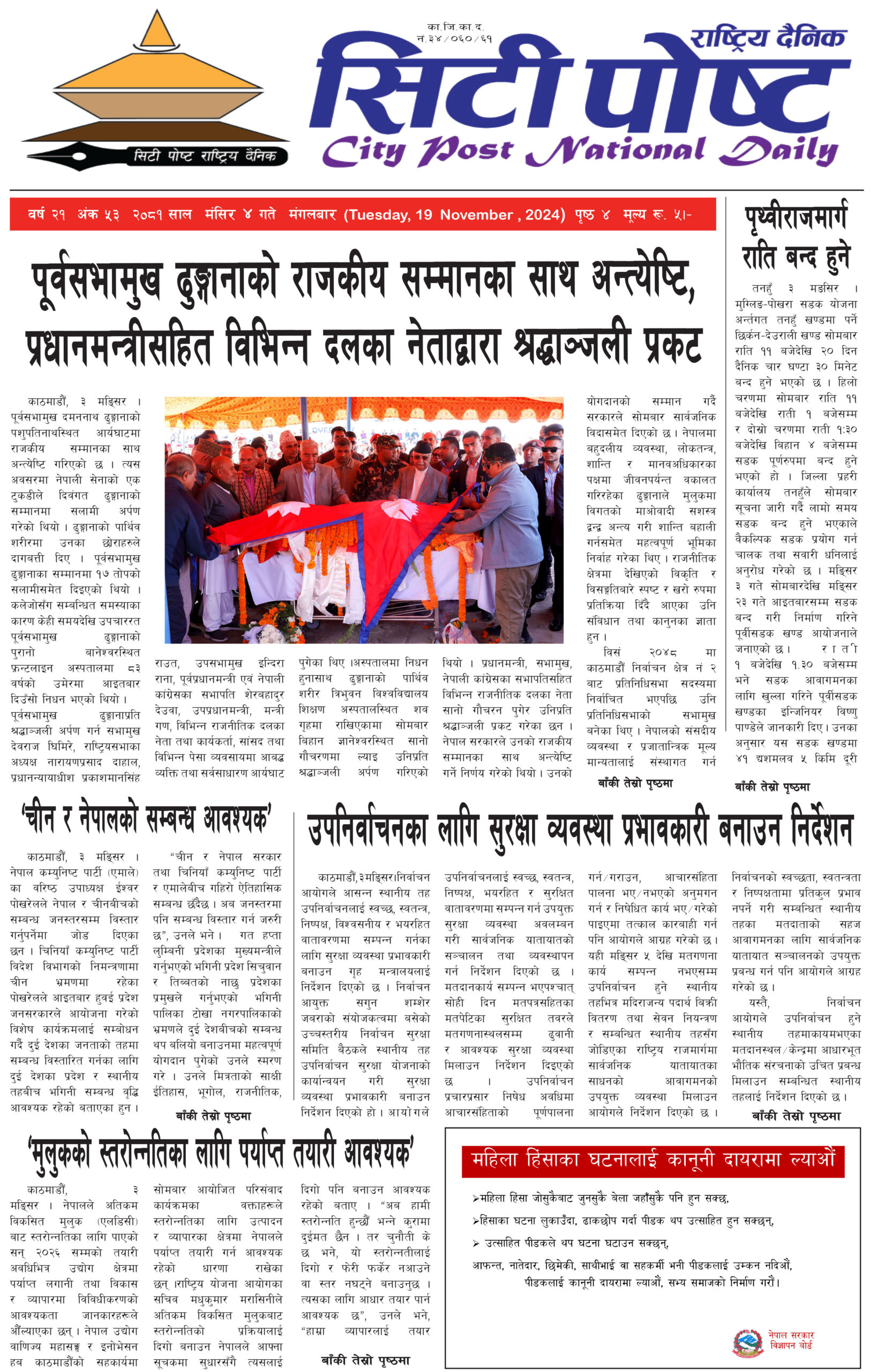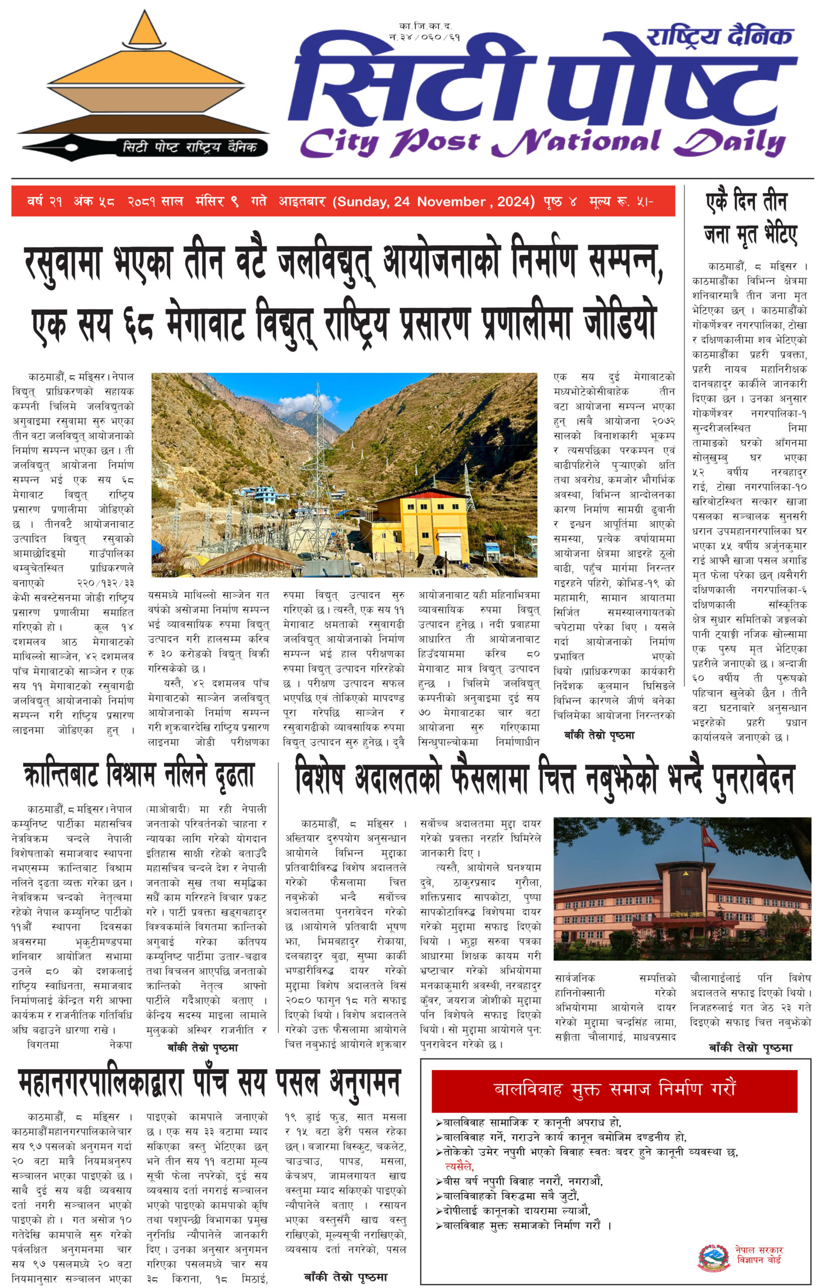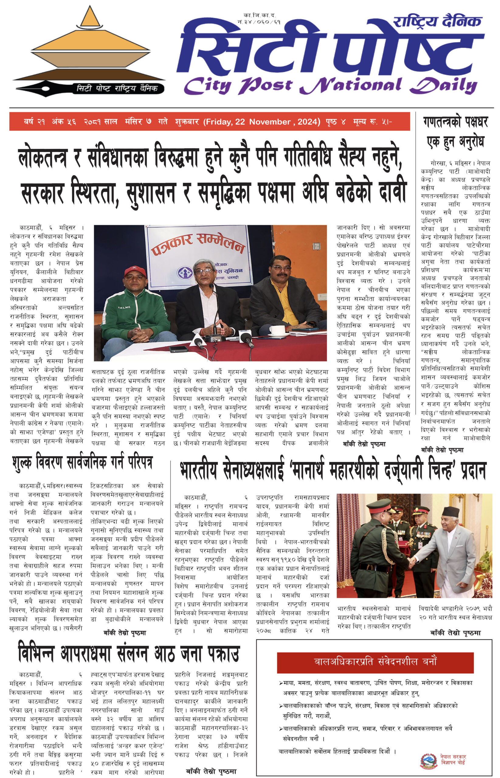 सिटीपोष्ट राष्ट्रिय दैनिक २०८१ मंसिर ५