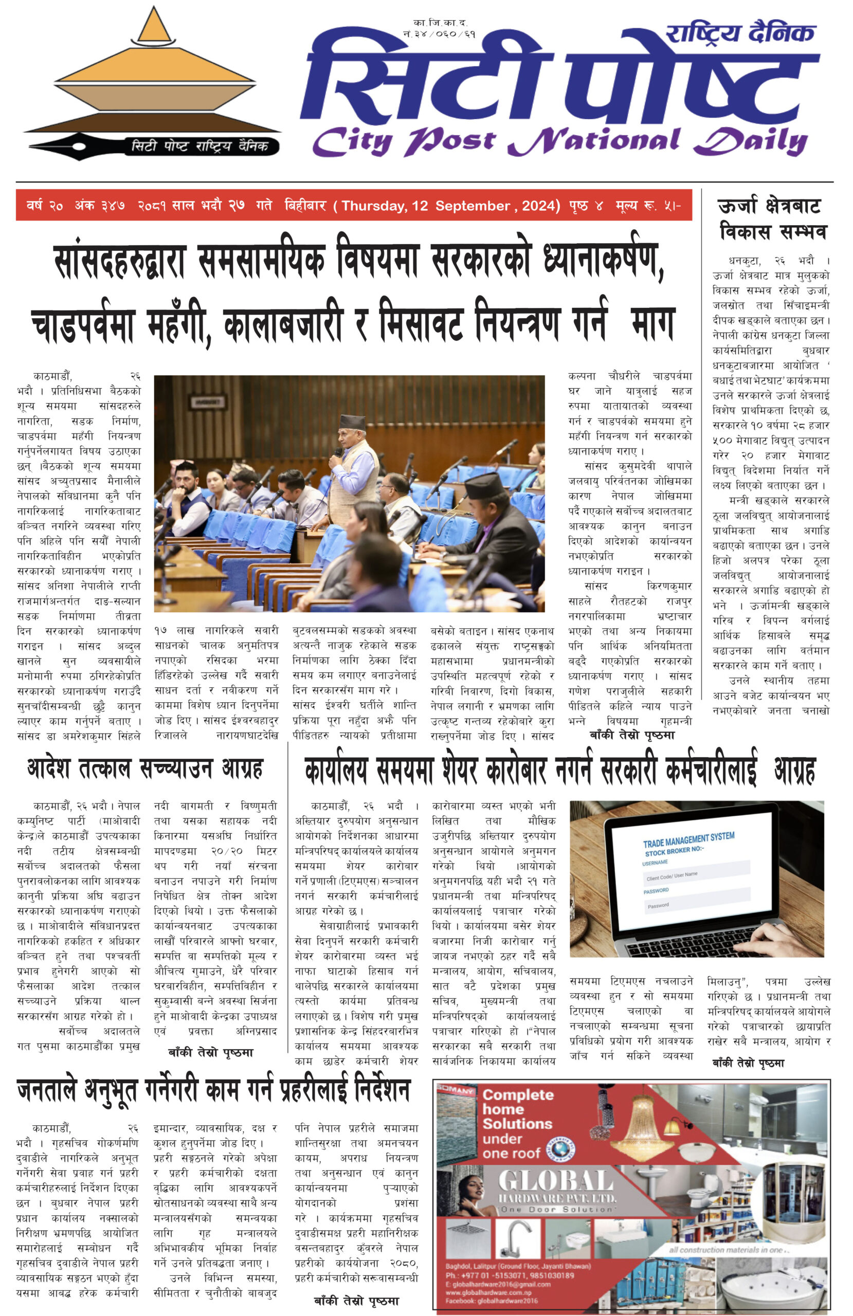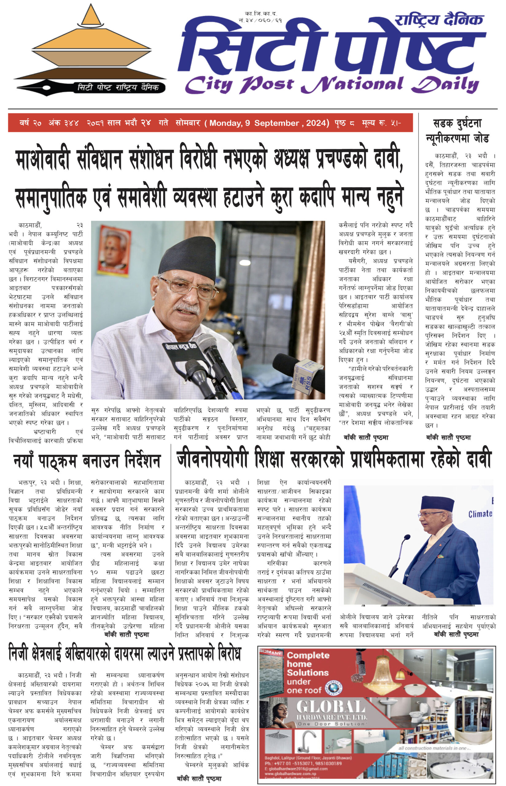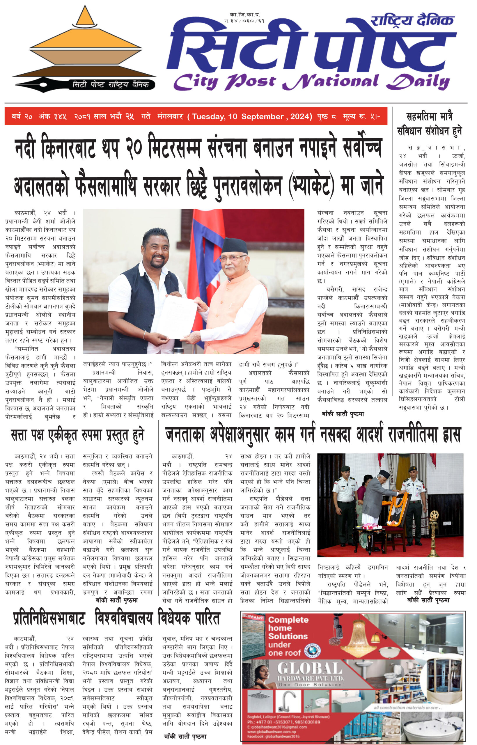 सिटीपोष्ट राष्ट्रिय दैनिक २०८१ भदौ २५