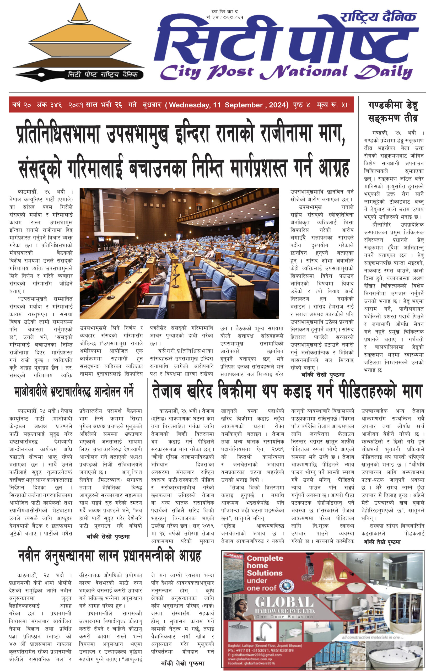 सिटीपोष्ट राष्ट्रिय दैनिक २०८१ भदौ २६