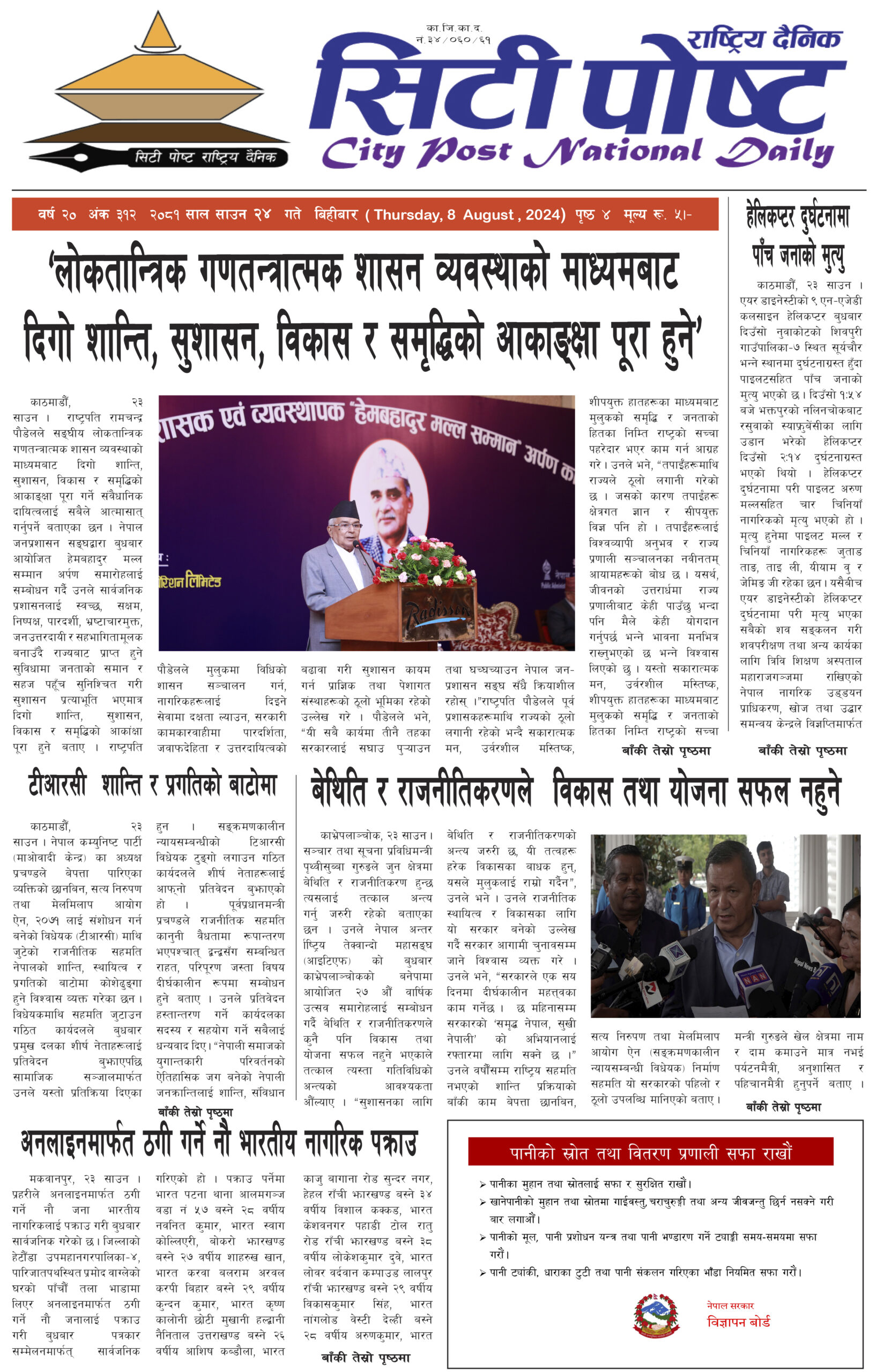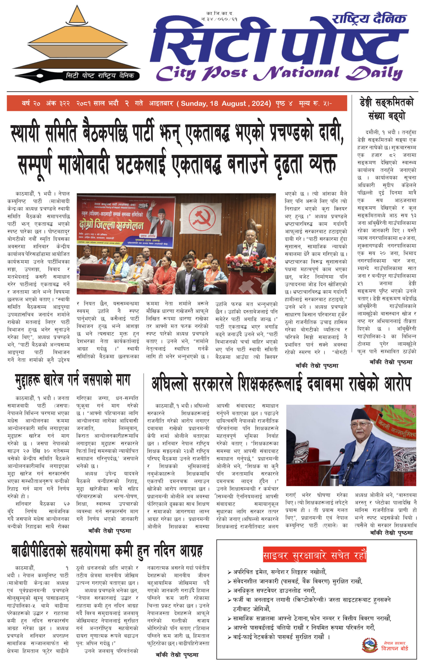 सिटीपोष्ट राष्ट्रिय दैनिक २०८१ भदौ ४