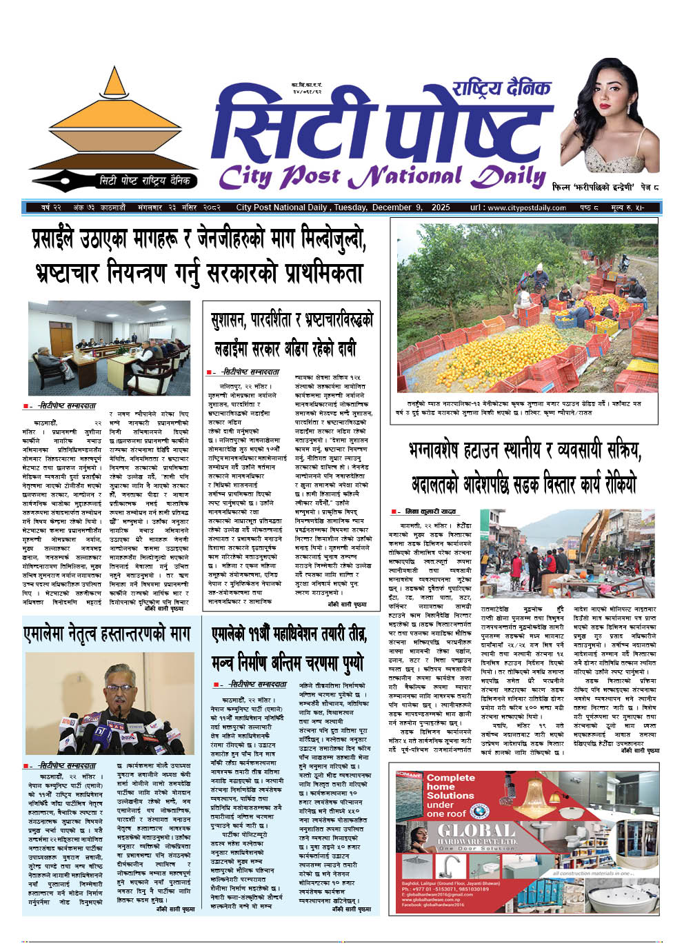 सिटीपोष्ट राष्ट्रिय दैनिक २०८२ मंसिर २६