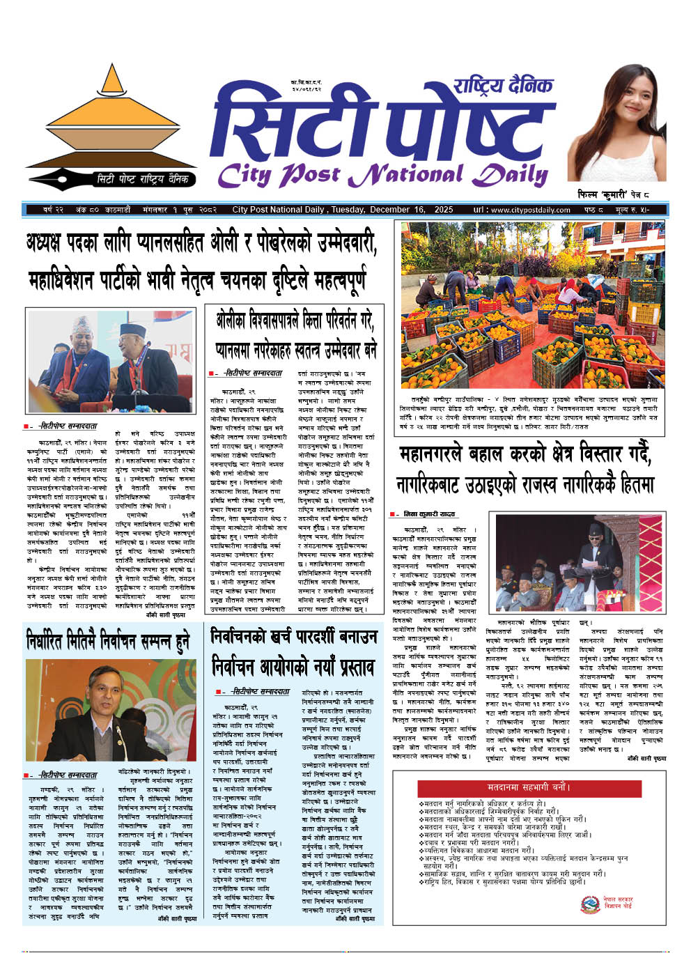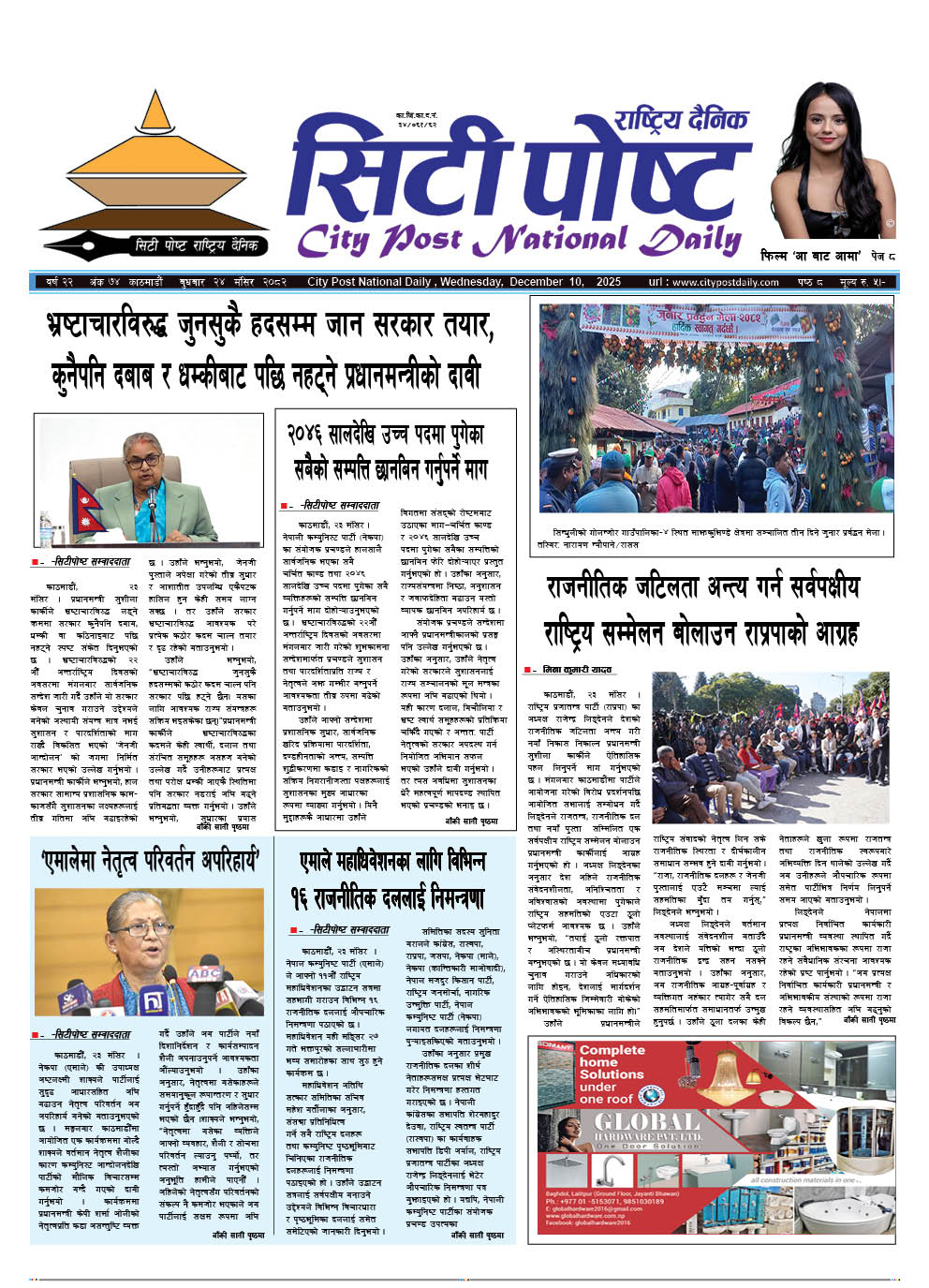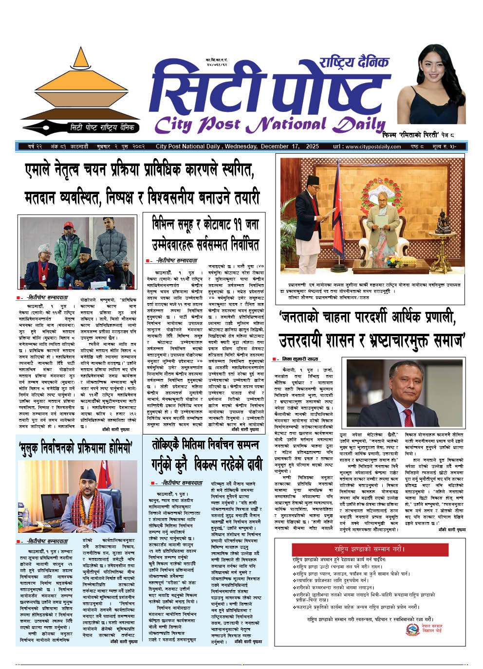 सिटीपोष्ट राष्ट्रिय दैनिक २०८२ पुस ६