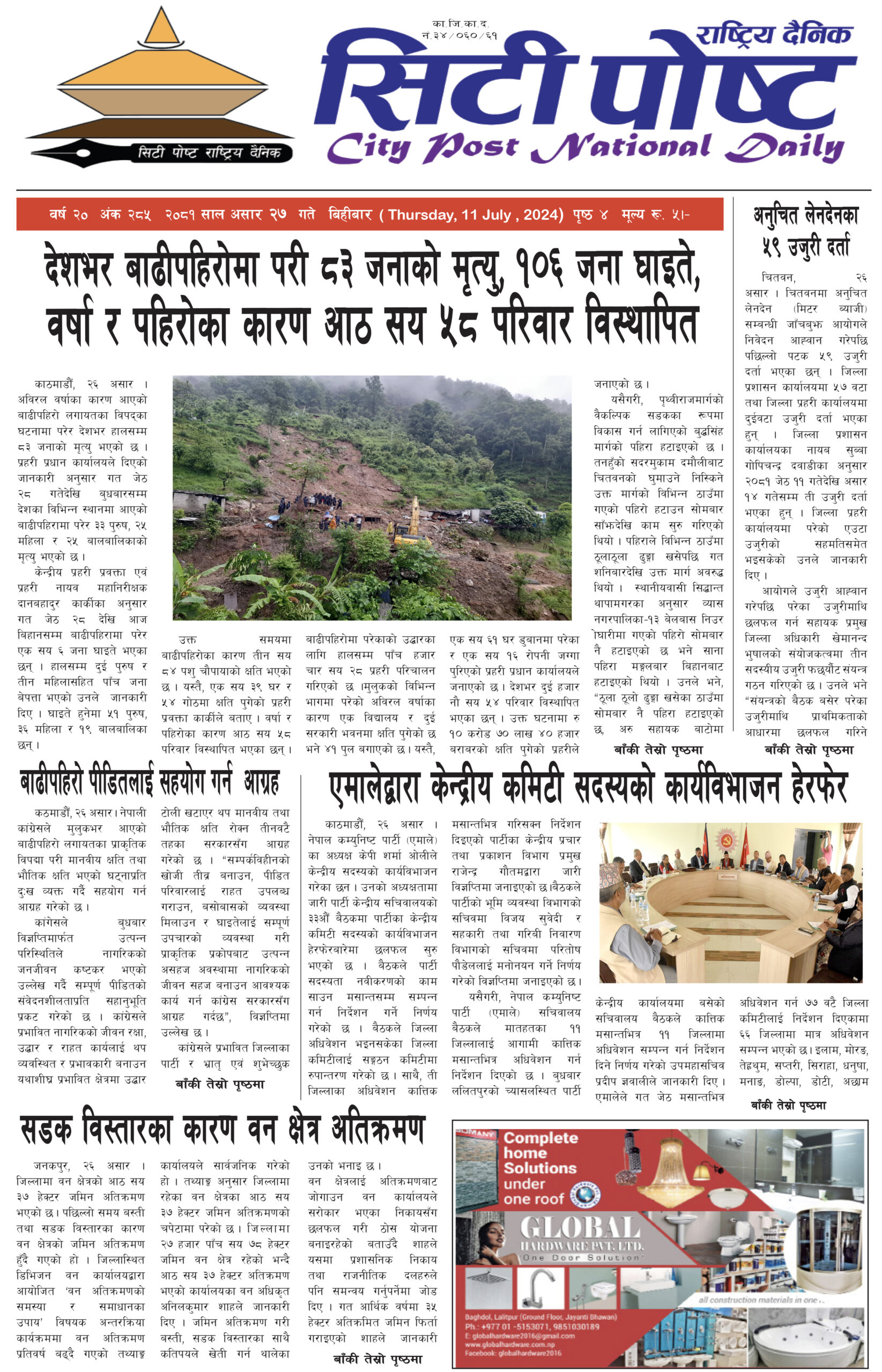 सिटीपोष्ट राष्ट्रिय दैनिक २०८१ साउन ४