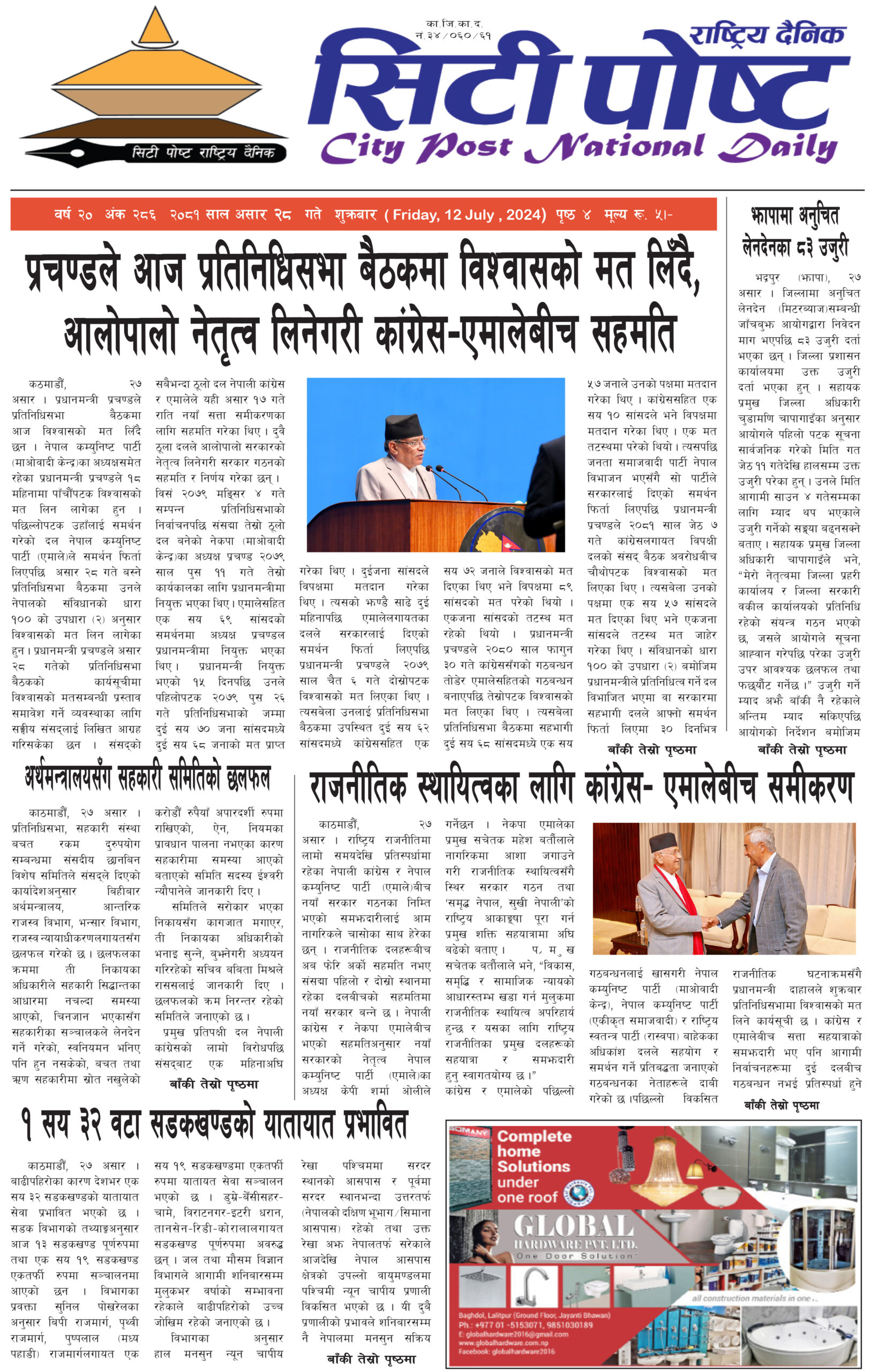 सिटीपोष्ट राष्ट्रिय दैनिक २०८१ असार २८