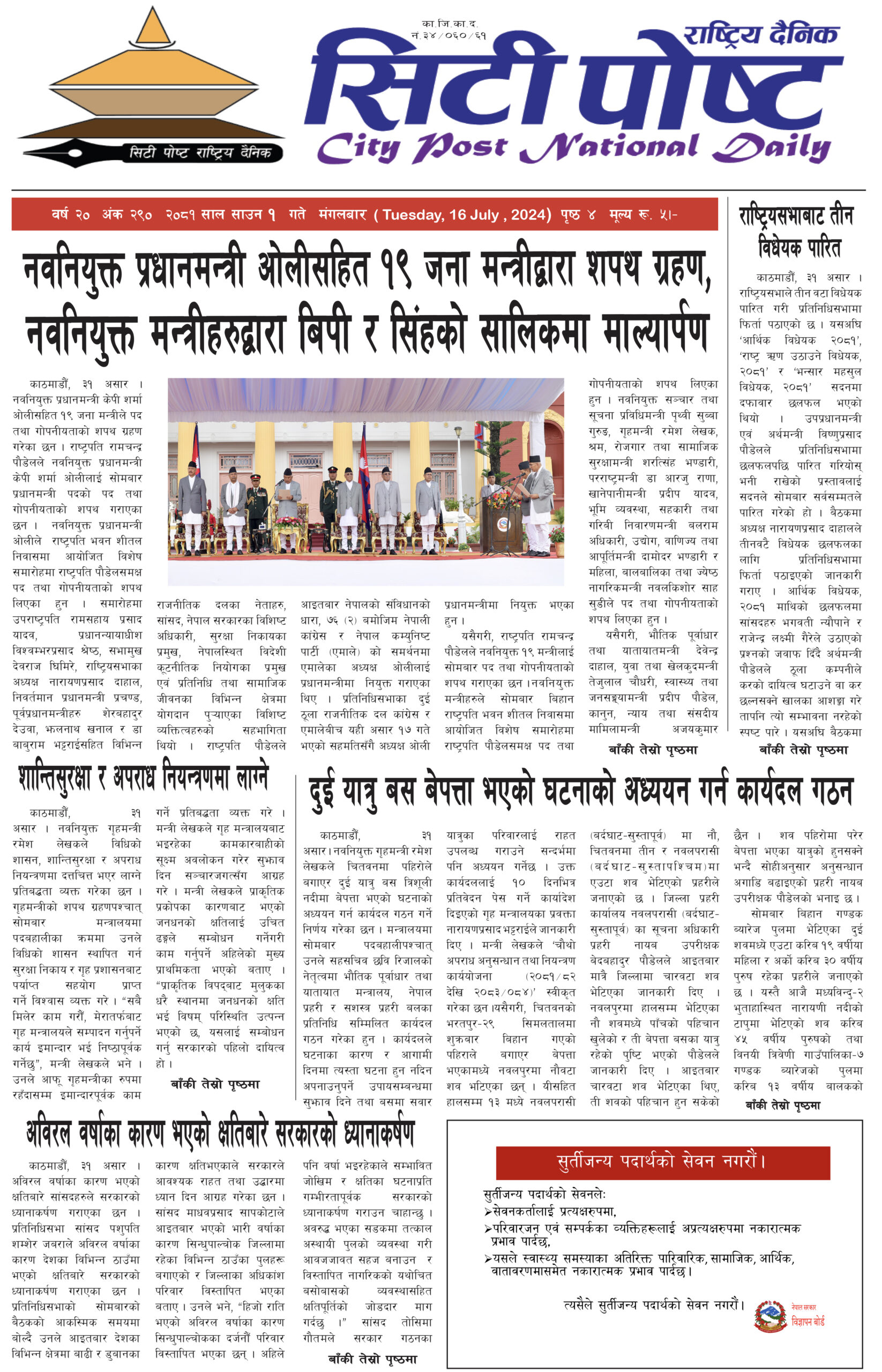 सिटीपोष्ट राष्ट्रिय दैनिक २०८१ असार ३०