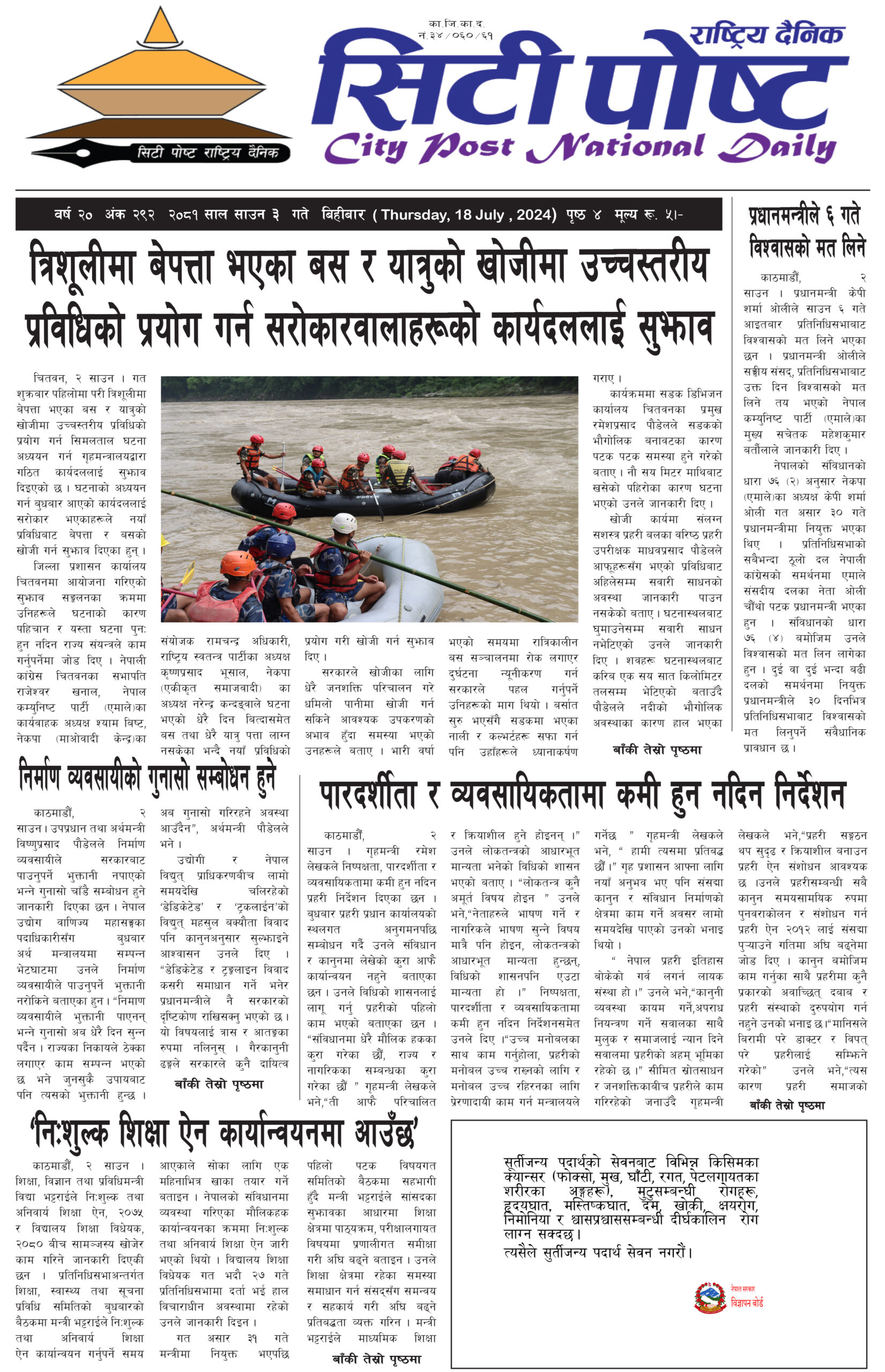 सिटीपोष्ट राष्ट्रिय दैनिक २०८१ साउन ६