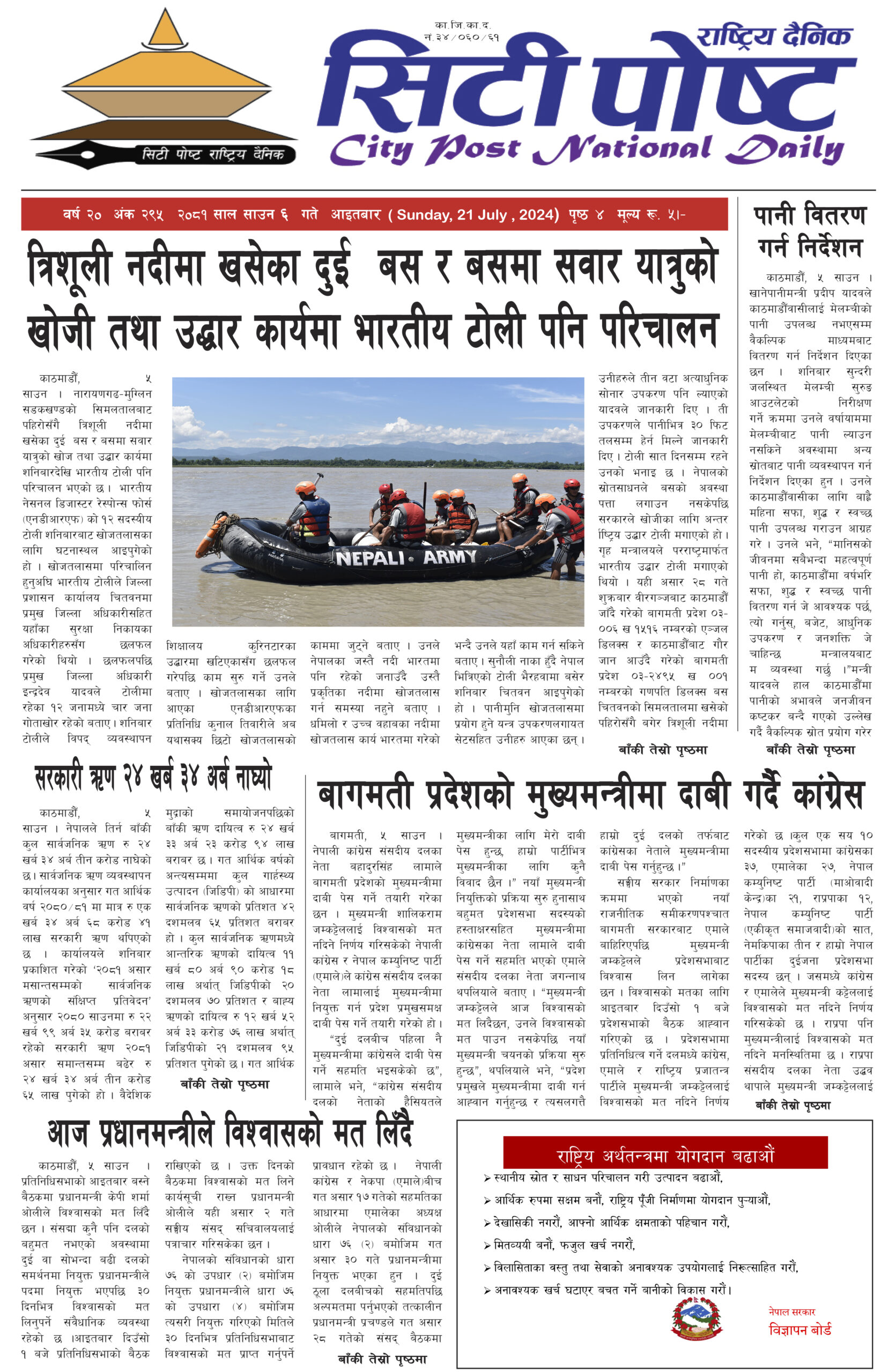 सिटीपोष्ट राष्ट्रिय दैनिक २०८१ असार ३१