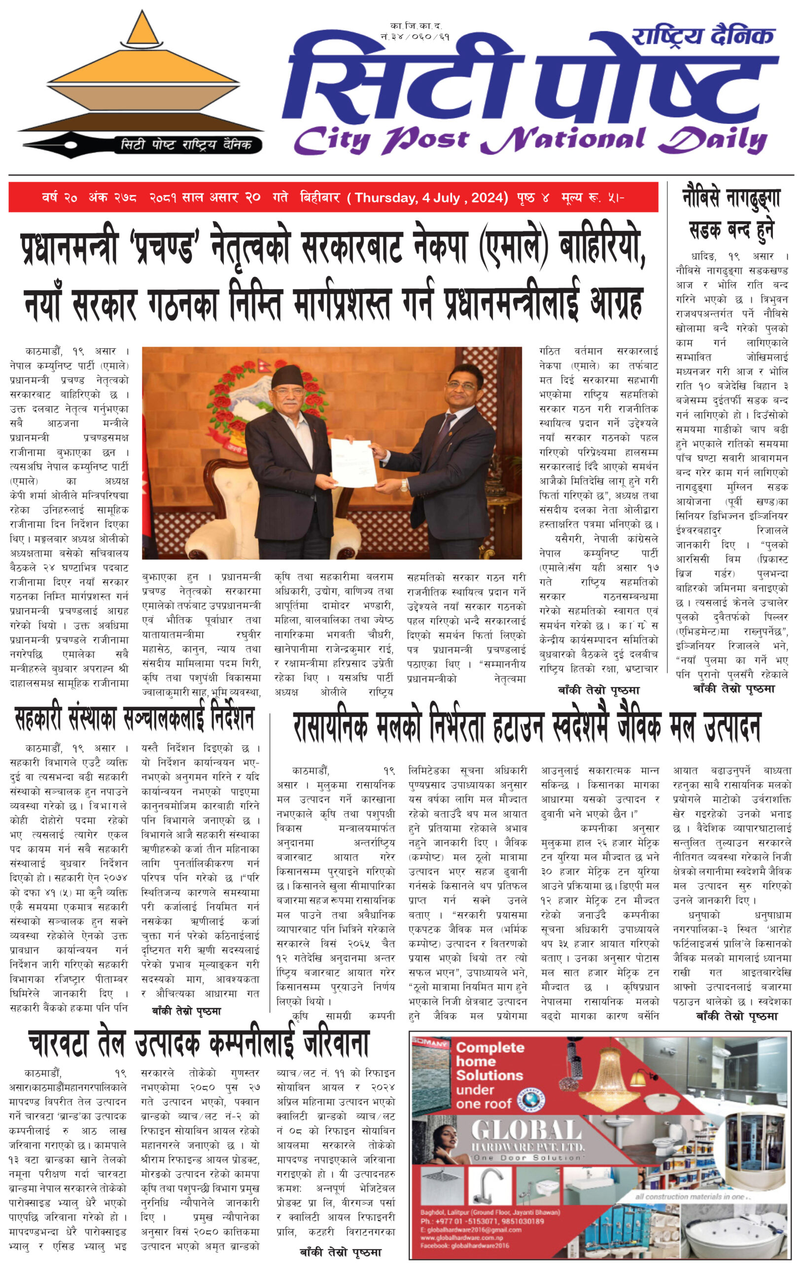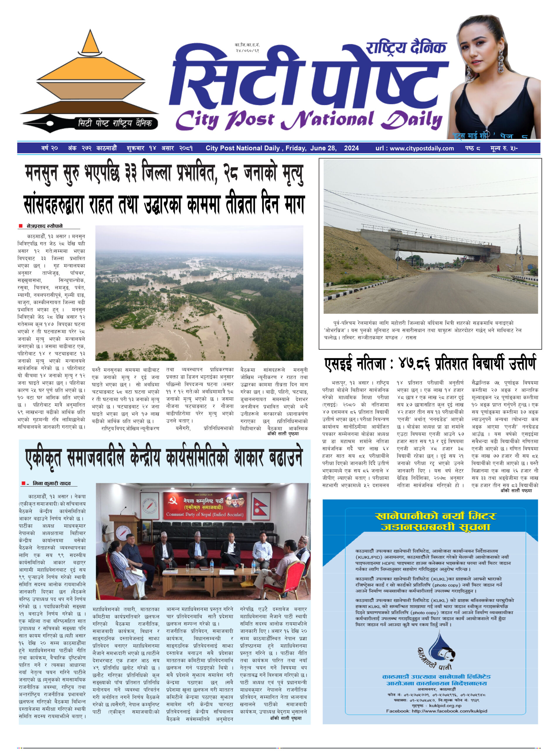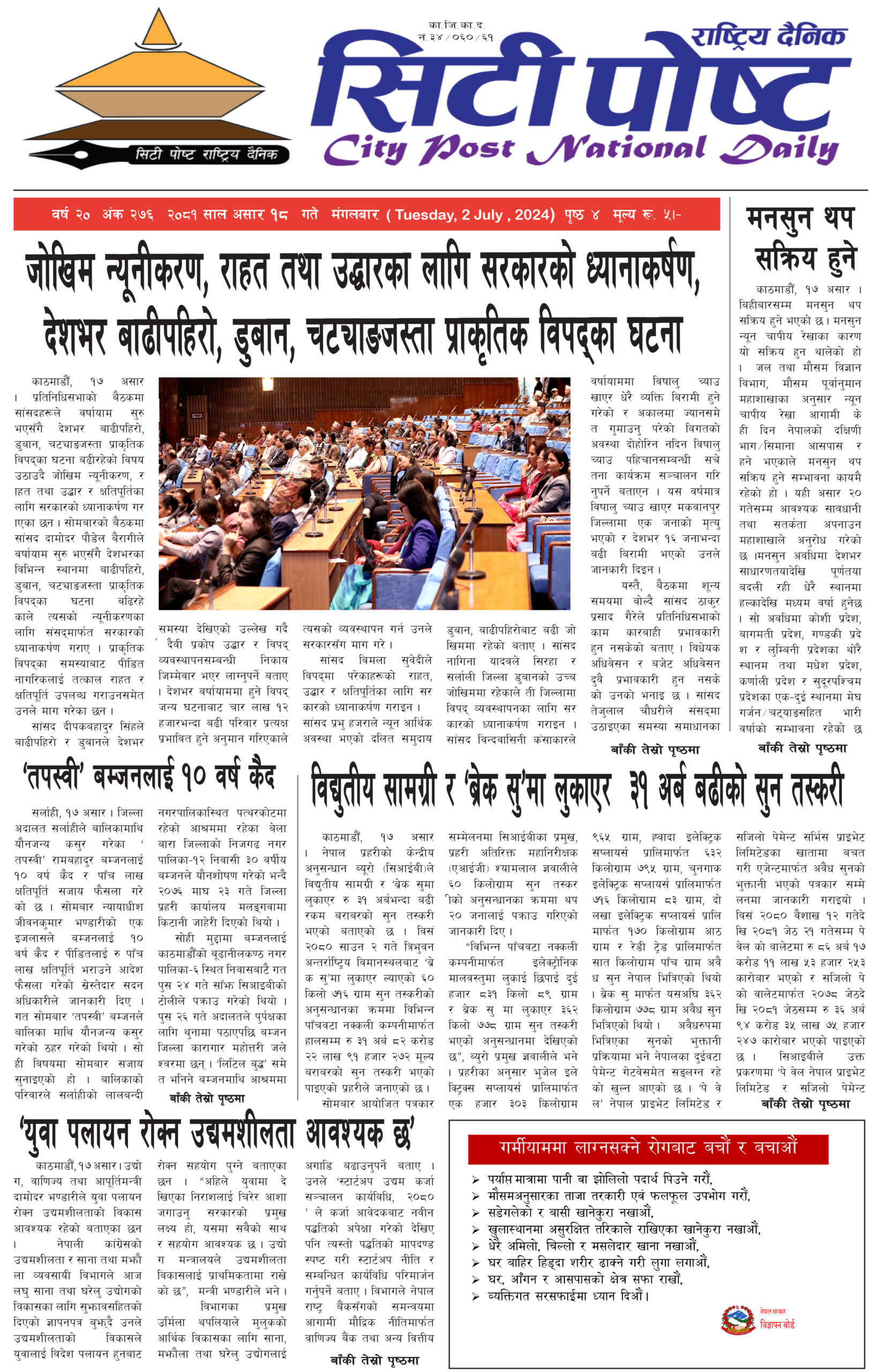 सिटीपोष्ट राष्ट्रिय दैनिक २०८१ असार १९